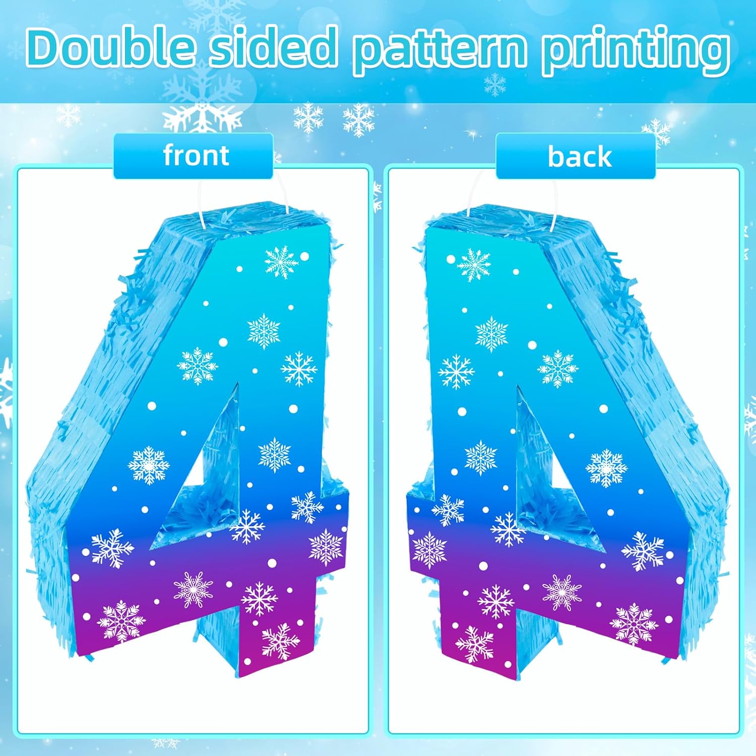 - Package includes: the Snowflake pinata set includes a number video game 4 pinata, a blindfold stick confetti in the package;Kids' eyes could be covered by the blindfold and then they hit the pinata with a bat to let out the candies, which can offer more fun and challenge to the party;Kids will absolutely love this part