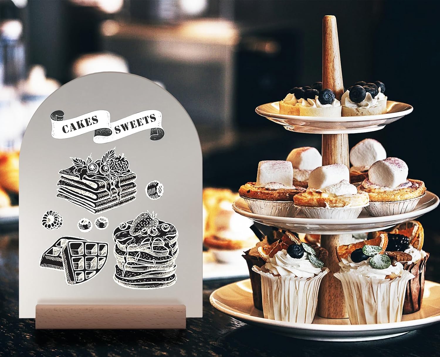 - DELICATE DESIGN - Glass-look acrylic is all the rage! Our frosted arch-shaped acrylic blanks paired with stands add a stylish and modern look to your event. The combination of the sturdy, wide wooden base and the acrylic blank ensures that any table number, card, or photo you create and display will always be upright during your event. They form the perfect foundation for creating gift table signs, picture displays, or wedding card holders.