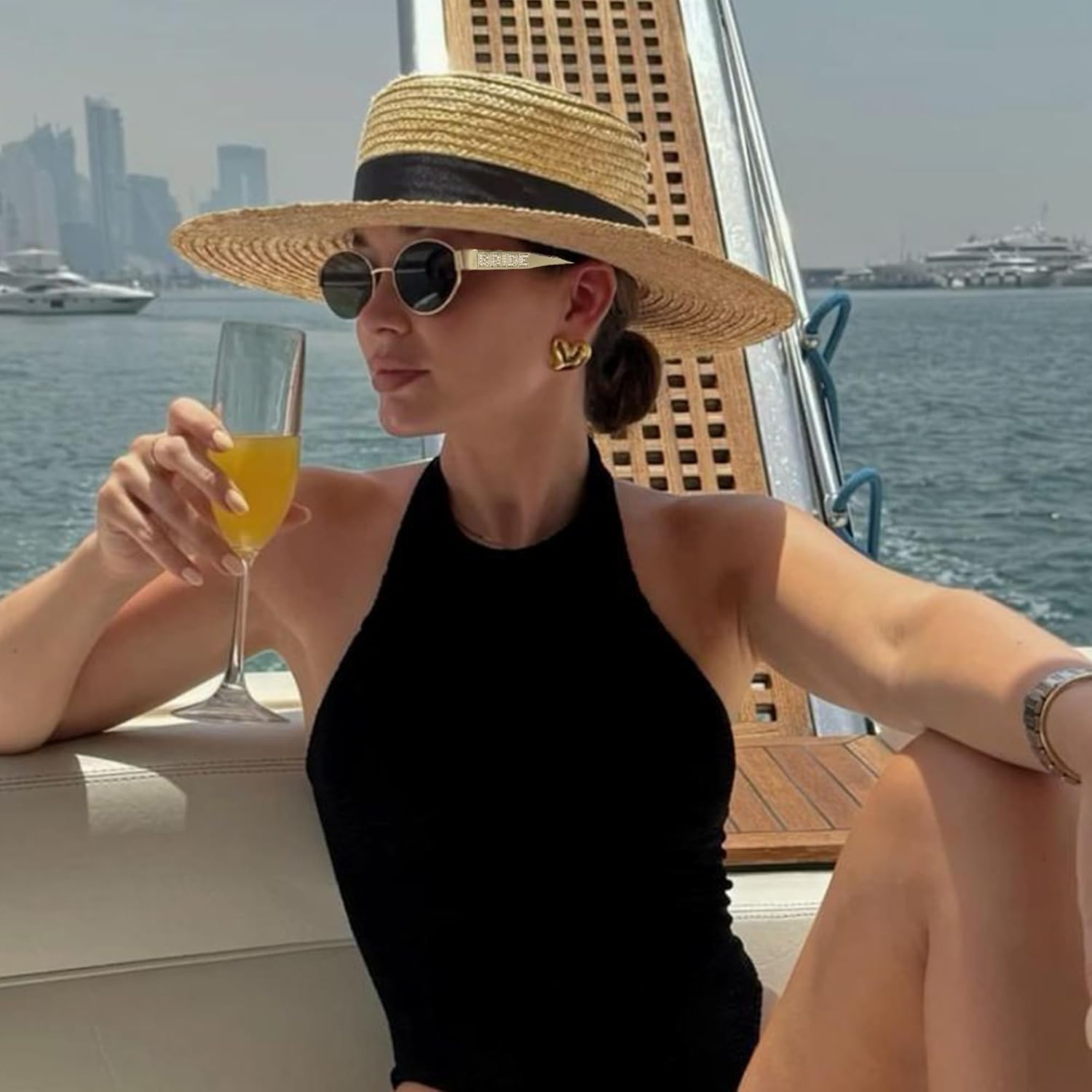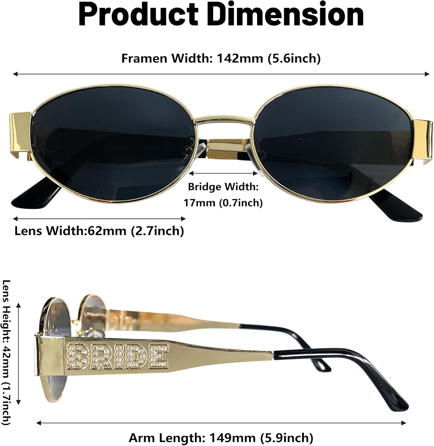 - Bide to Be: Featuring a delicate "BRIDE" logo on the temples, beautifully embellished with small lustrous pearls.This refined deatail adds a romantic,luxurious touch to bridal look,making it a perfect accessory for the bride and her bridal party.