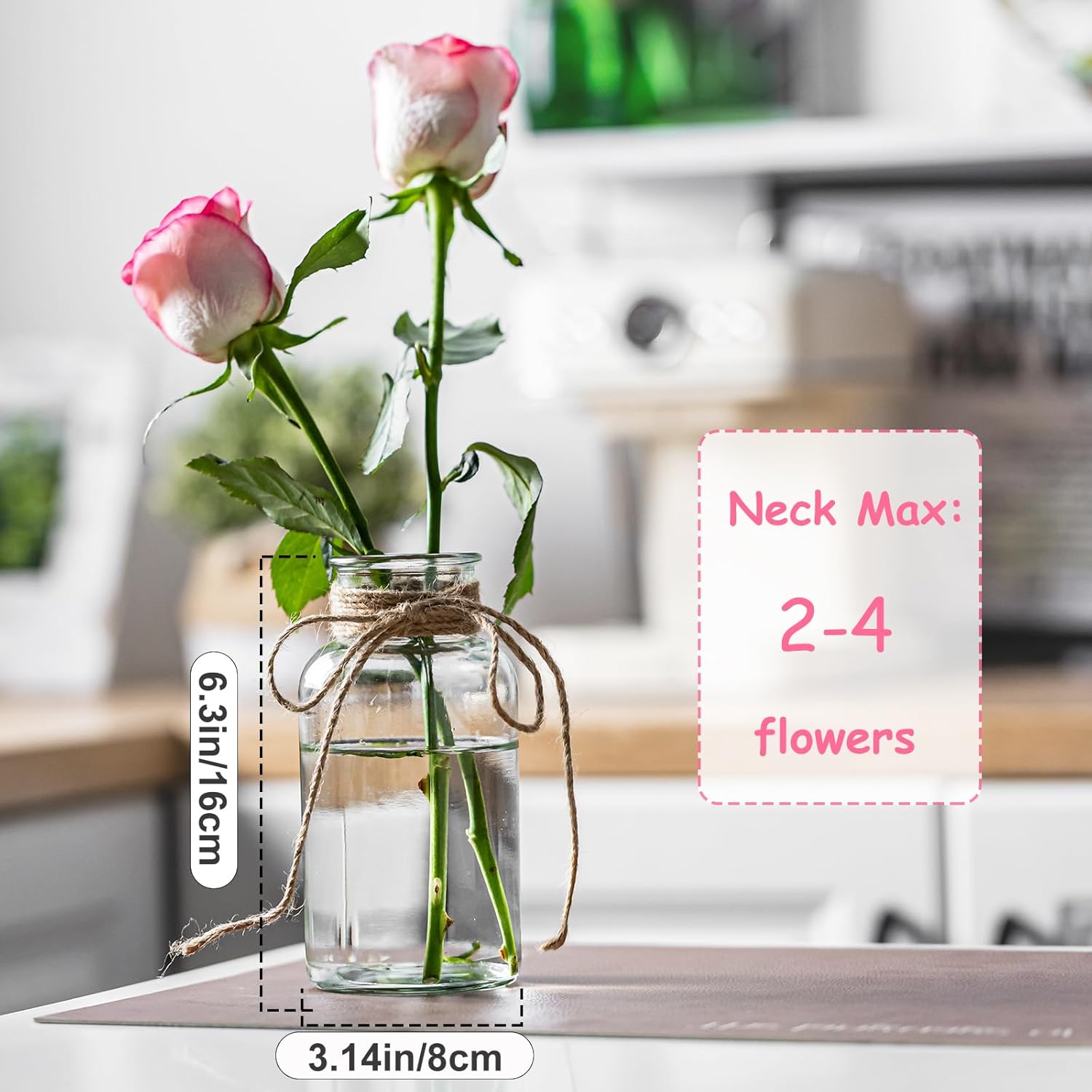 - 【Vintage Style】: The mason jar vase with rope design exude a delightful vintage farmhouse charm. The rustic rope detailing adds a touch of warmth and a unique aesthetic. Whether you're decorating for a wedding, sprucing up your home, or setting the table, these vintage vases blend seamlessly with a variety of decor themes, from classic to shabby chic.(Not Included Flowers)