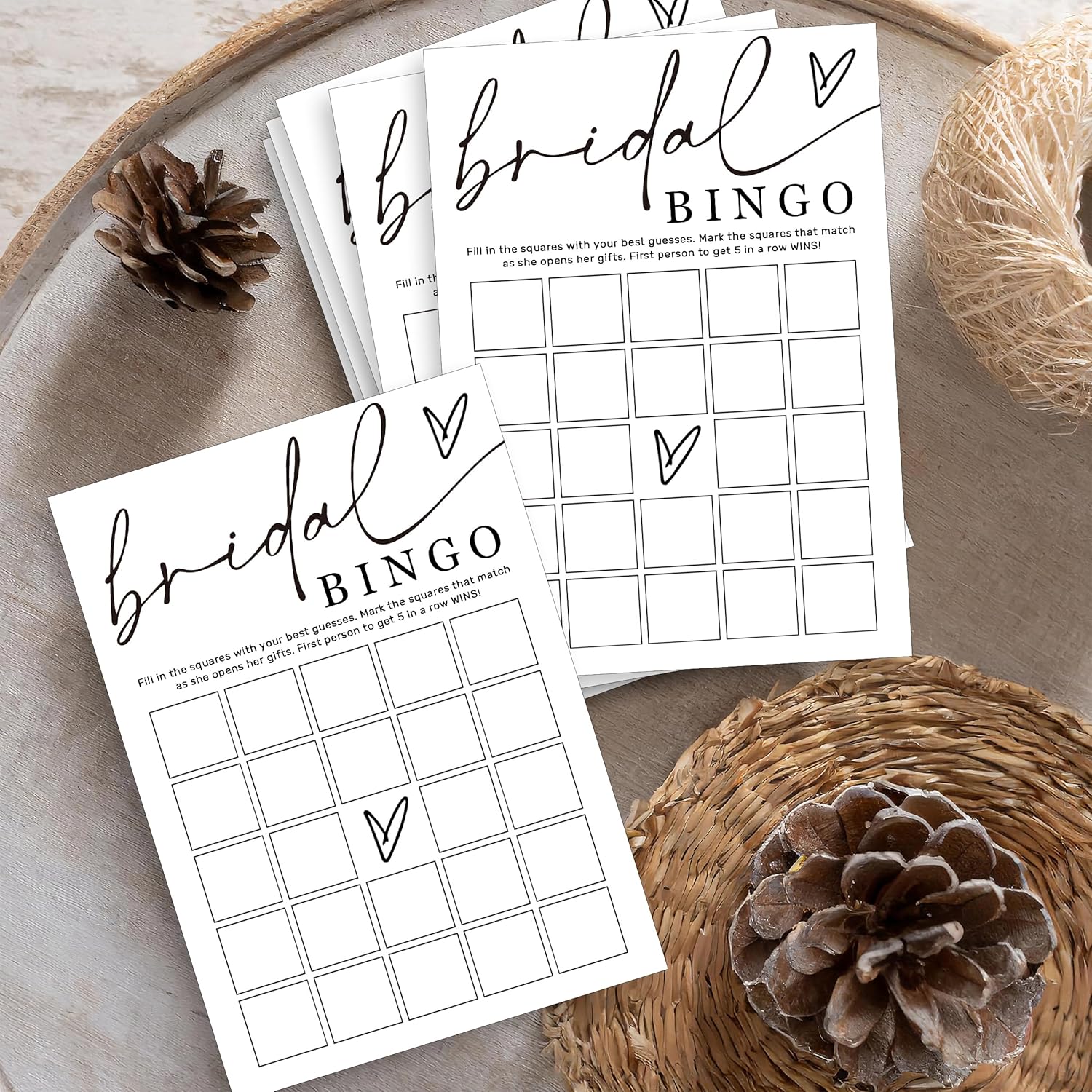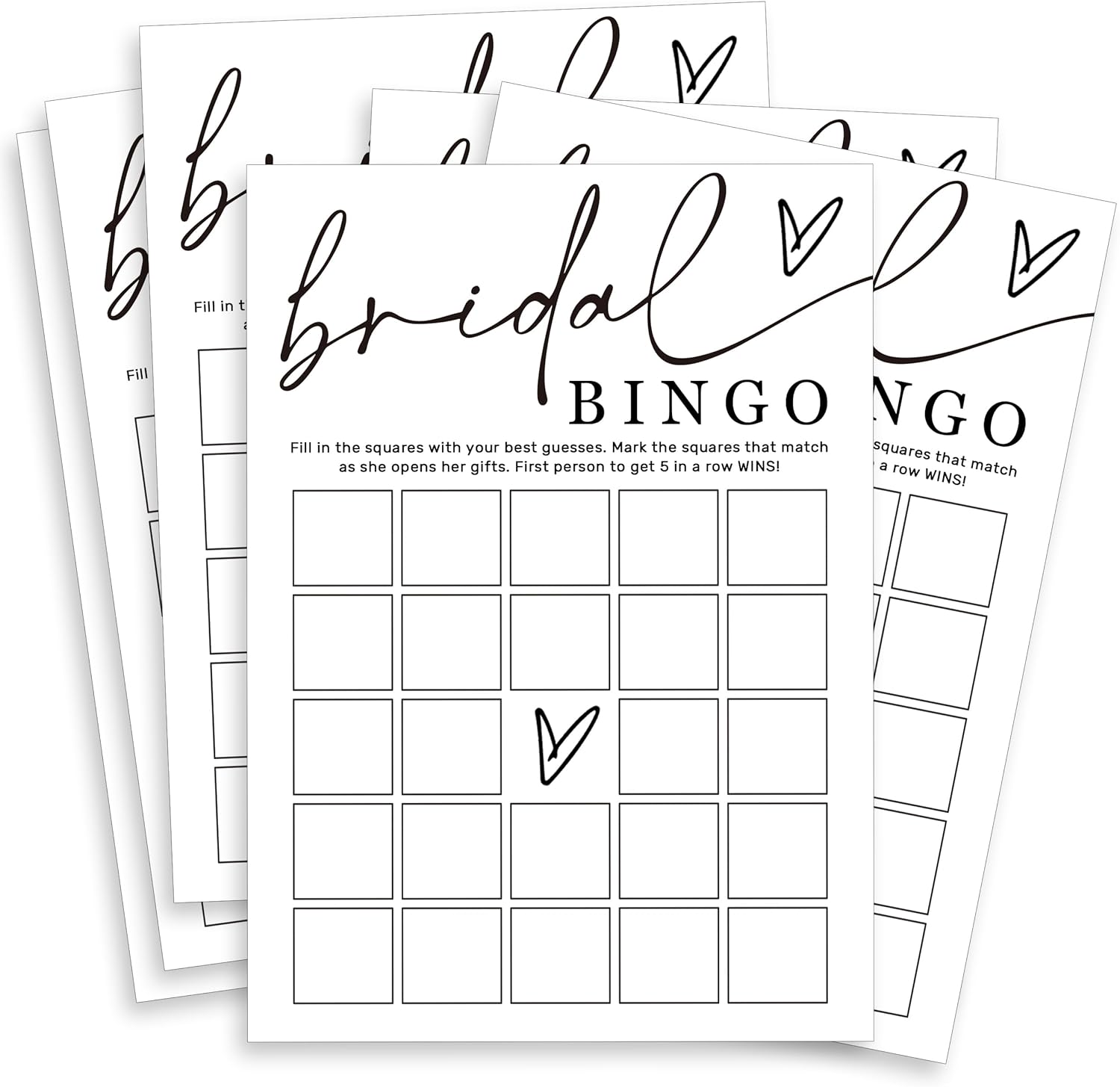 Fun Bridal Shower Bingo Games Set with Blank Squares to Wedding Guest Book idea Bride’s Gifts, Fun Wedding Shower Games Activity for 25 Guests Minimalist White Newlywed Party Supplies - A14