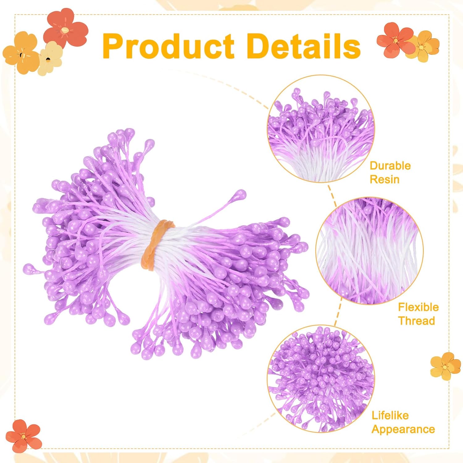 - [Advantage] - Our handmade flower pollens stamen features a double-headed design with flower cores connected at both ends, perfectly creating the dynamic form of natural flower stamens. Not only does it present bright and lasting colors and soft luster, but it also has the property of anti-fading, making it more enduring and attractive than real flowers. The flower stems are flexible and malleable, allowing for free bending and cutting, ensuring your creative creations never wither