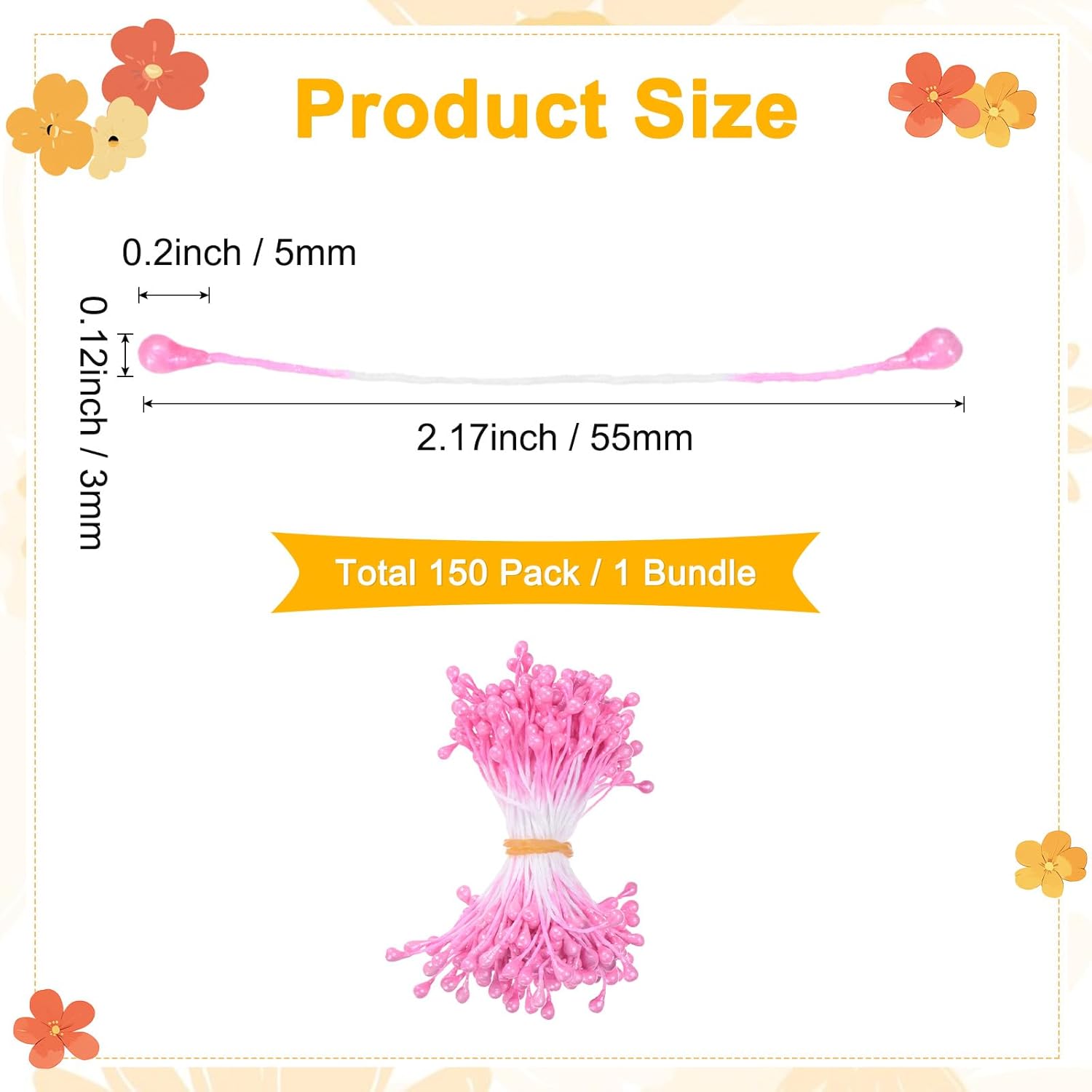 - [Size & Package] - It contains 150 mini double-headed stamens (each 55 mm/ 2.17 inch long and the fake flower head is 5 x 3 mm / 0.2 x 0.12 inch (L x W)), 1 Bundle, the fine size of the flower core better presents the natural layering of the flower