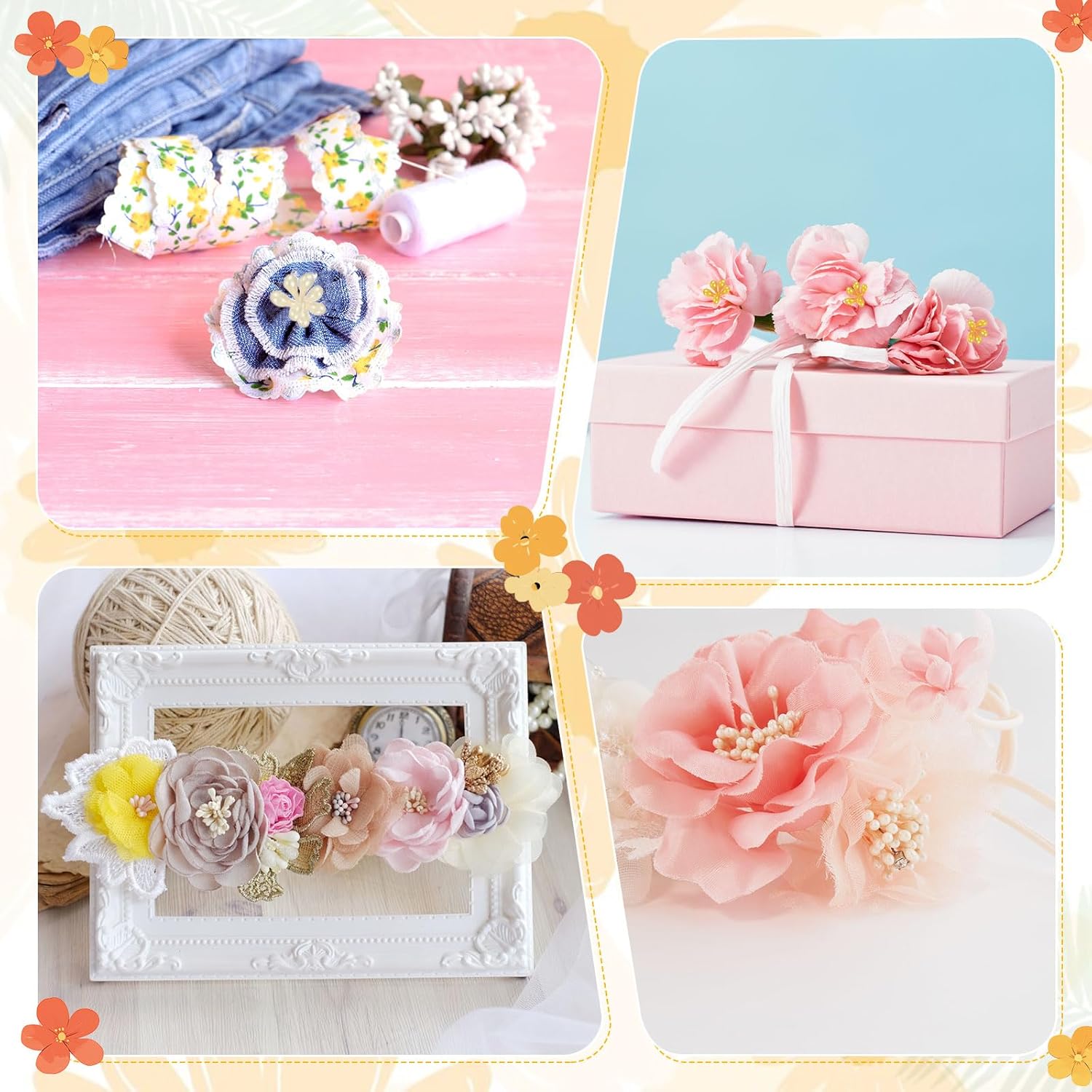 - [Multipurpose Use] - Our stamens for flower making are suitable for making handcrafted flowers such as hair flowers and corsages, DIY decorations like greeting cards, scrapbooks, gift box embellishments, flowers in wedding and festival decorations, cake decorations, Christmas ornaments, etc., as well as hair accessory matching. It can add beauty to your creativity