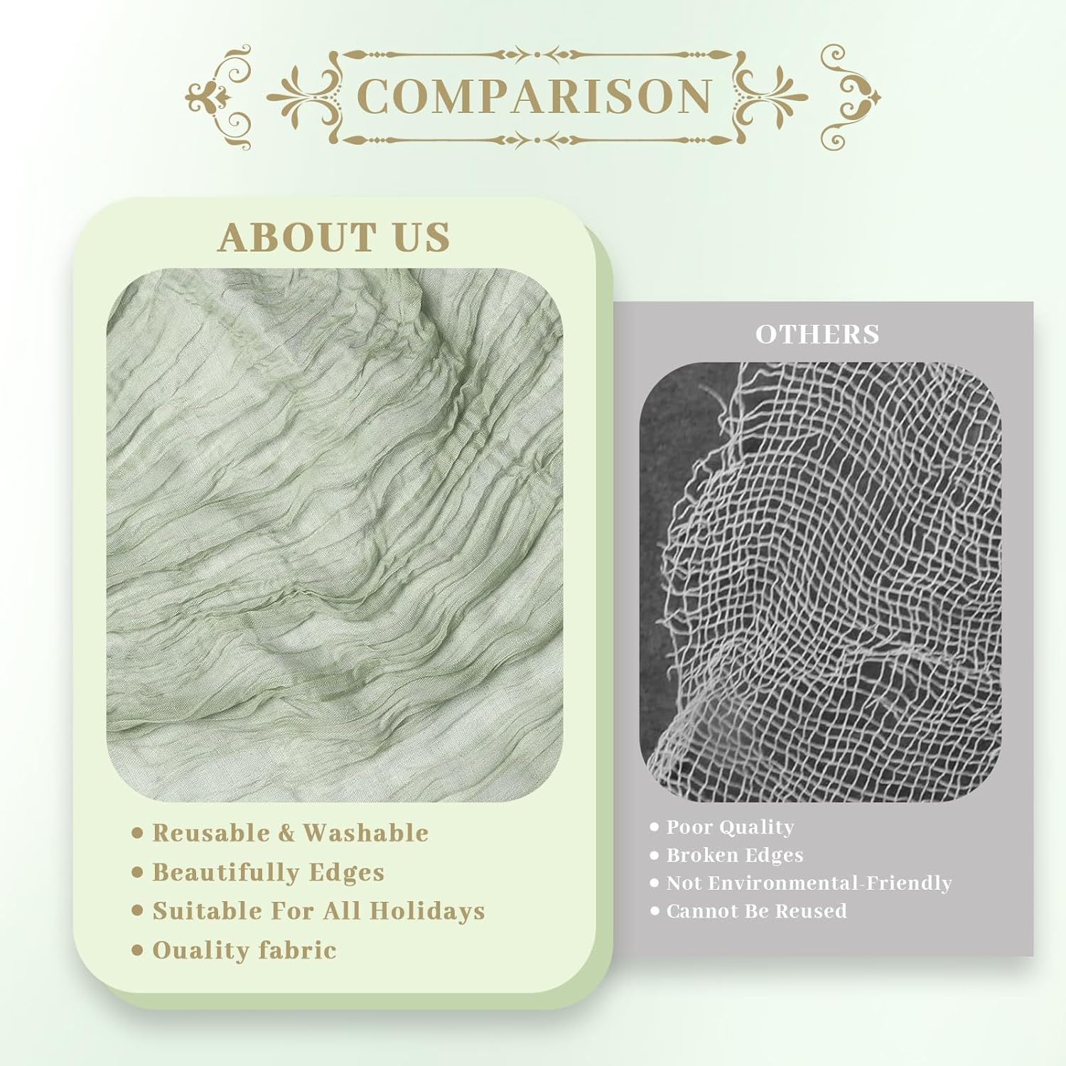 Le courant 6pcs 10Ft Cheesecloth Table Runner, Rustic Boho Gauze Cheese Cloth Runner Table Runner for Weddings Bridal Baby Shower Birthday Holiday Parties Home Decor, Sage Green
