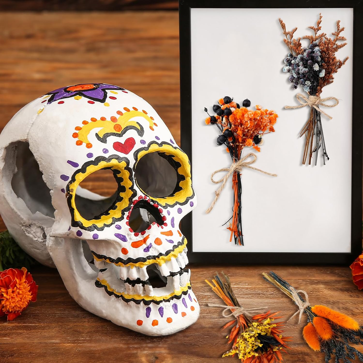 10/12/24/36 Pack Mini Dried Flowers for Vase Wedding Various Mini Bouquet Dried Small Wildflowers Natural Flowers Bulk for Crafts DIY Decor (12, Halloween Color2)