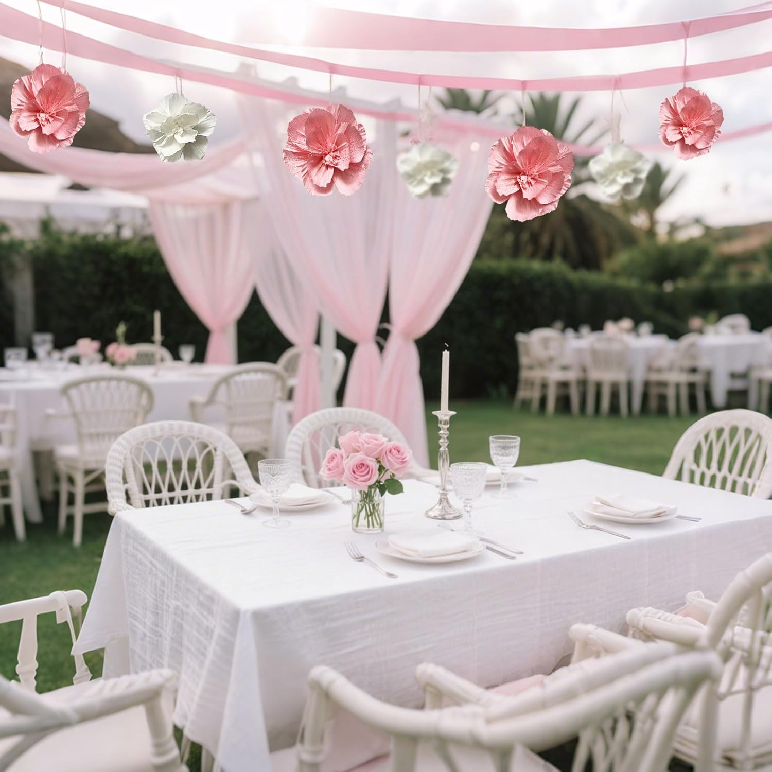 - Crepe Paper Flowers: Total 9pcs pink and white paper flowers in 3 sizes 12”, 10”, 8”.