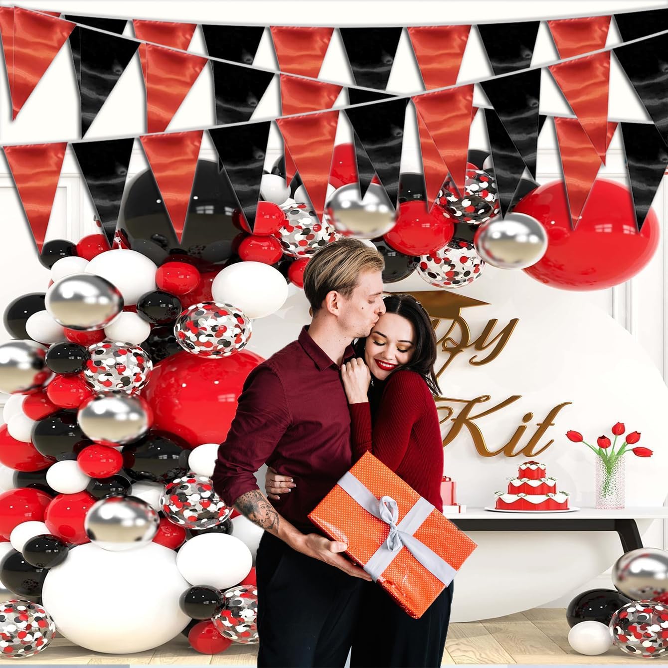 65FT Red Black Triangle Pennant Banner Flag Metallic Fabric Bunting Garland for Christmas Graduation Bachelorette Anniversary Birthday Engagement Wedding Anniversary Casino Party Decorations Supplies