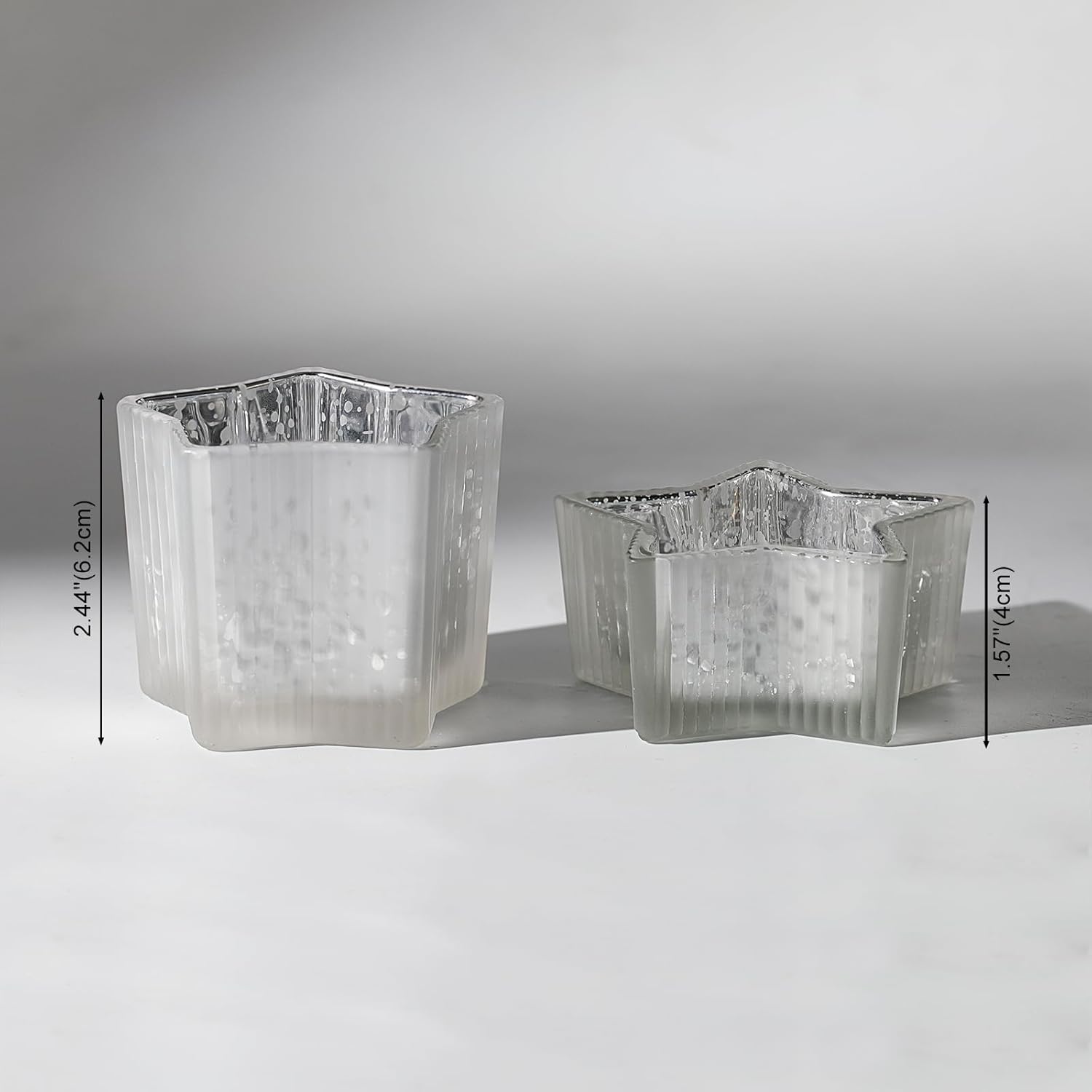 Letine 10pcs Frosted Silver Ribbed Star Candle Cups - Assorted Height Tea Light Candle Holders, Mercury Glass Votives for Wedding, Fall Table Centerpiece& Holiday Decorations (Tall 2.44", Short 1.57")