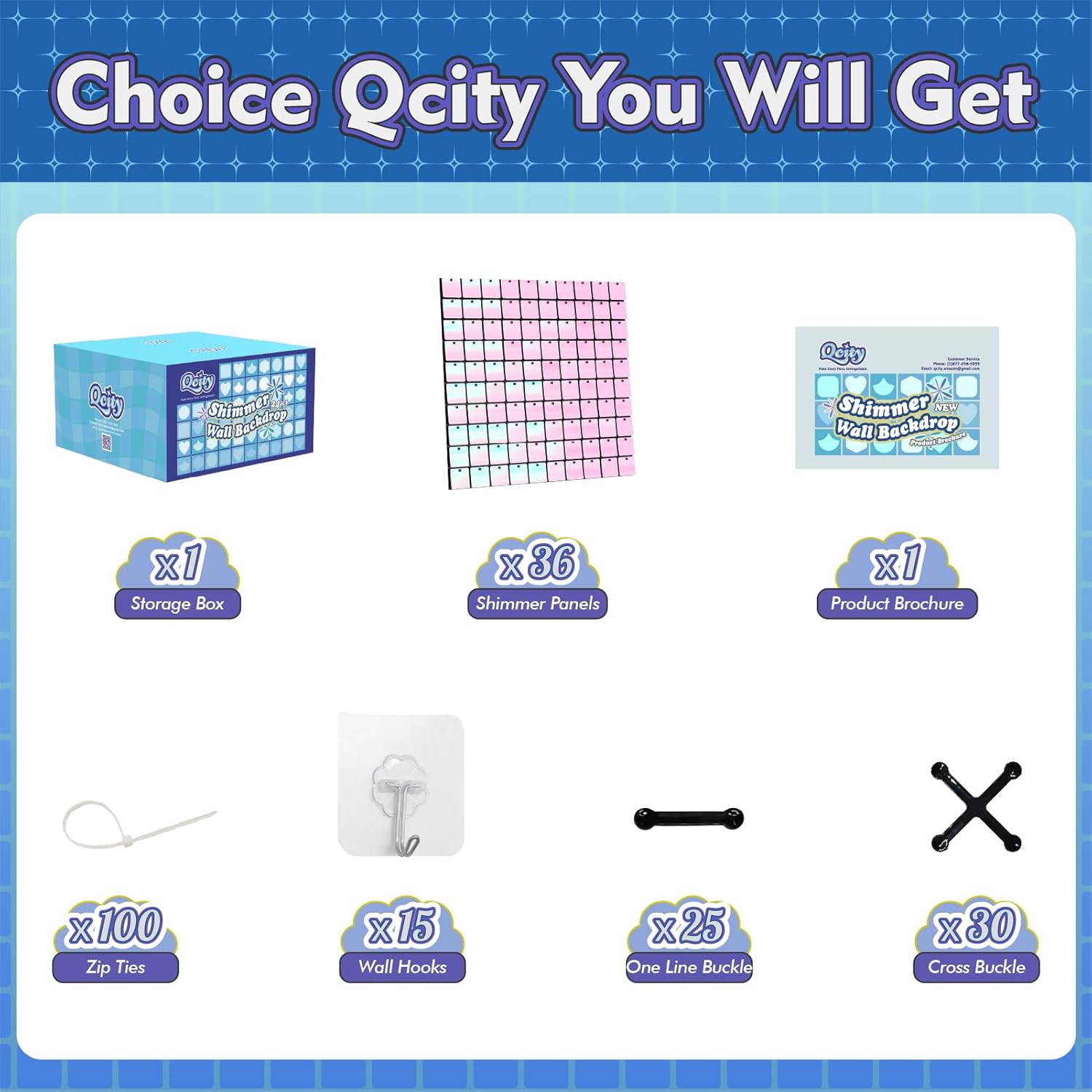 - Complete Kit: Each package includes 36 sequin wall panels (12"x12" each), along with 100 zip ties, 15 wall hooks, 25 single-line buckles, 30 cross buckles, and an installation manual. (Backdrop stand not included.)