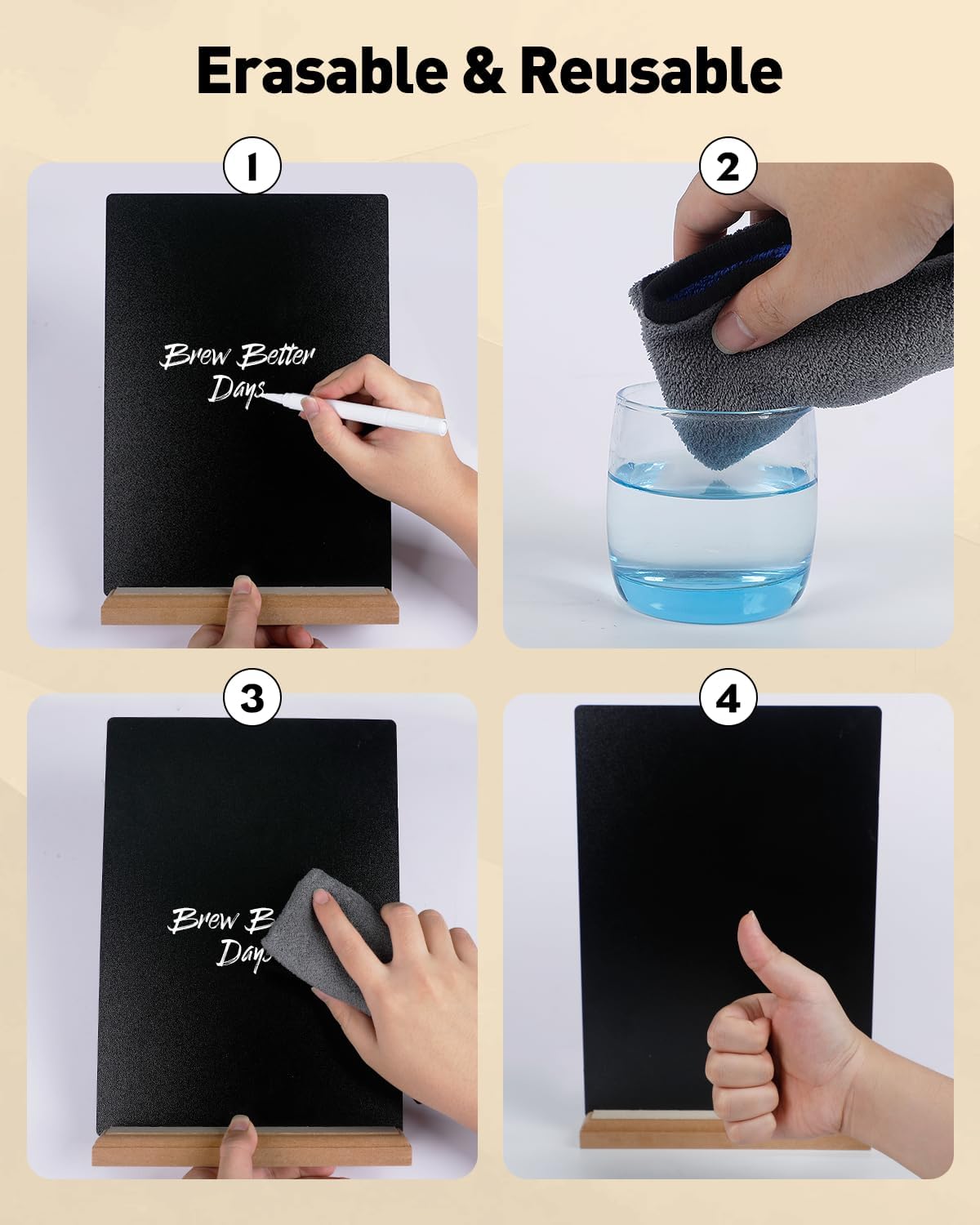 - Erasable & Reusable: Write and erase hundreds of times without ghosting or staining! The textured surfaces ensure smooth writing with both liquid chalk markers and traditional chalk. To refresh your display, just wipe it clean with a damp cloth