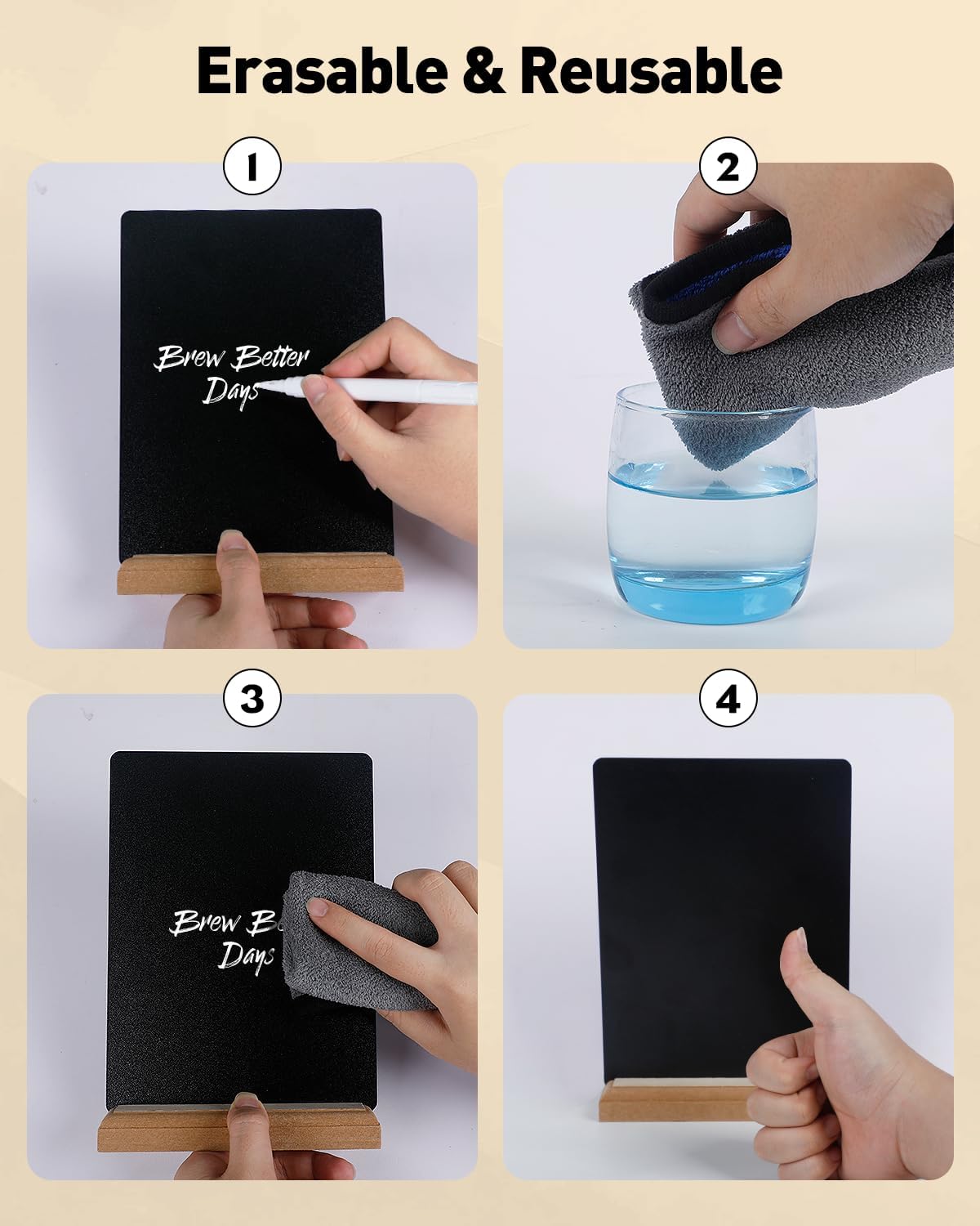 - Versatile Small Blackboard: Work great as table numbers, place cards, menu boards, or message boards in restaurants, cafes, bars, homes, and offices. Ideal for both everyday use and special occasions like weddings, parties, and buffets