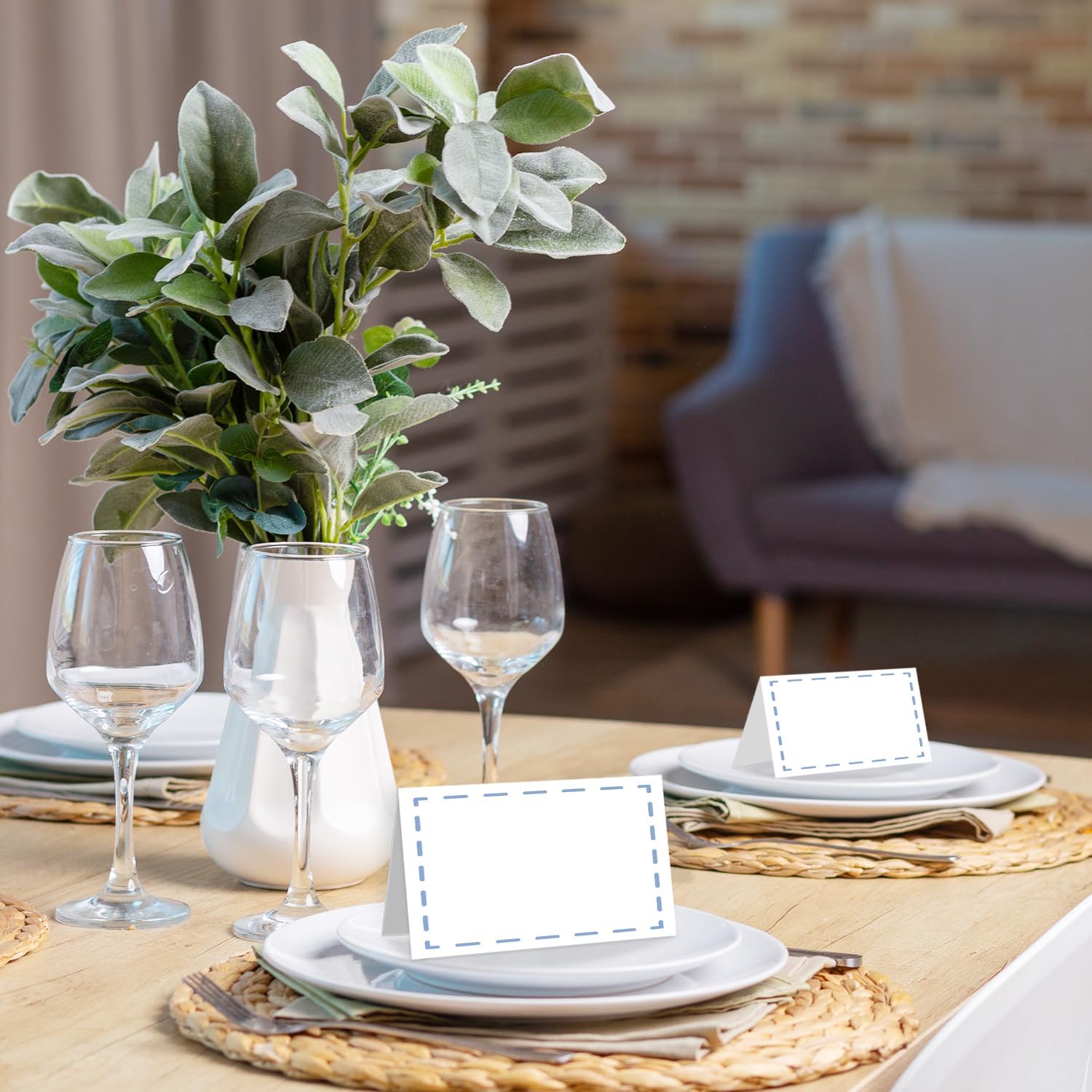 25 Pack Blue Lines Place Cards, Editable Name Cards for Table Setting, Tent Cards Food Label for Dinner Party, Bridal Shower, Wedding, Baby Shower and Events -T17