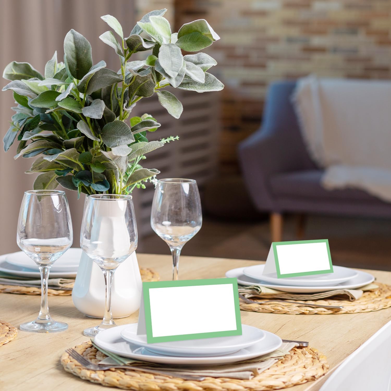 25 Pack Green Border Place Cards, Editable Name Cards for Table Setting, Tent Cards Food Label for Dinner Party, Bridal Shower, Wedding, Baby Shower and Events -T25