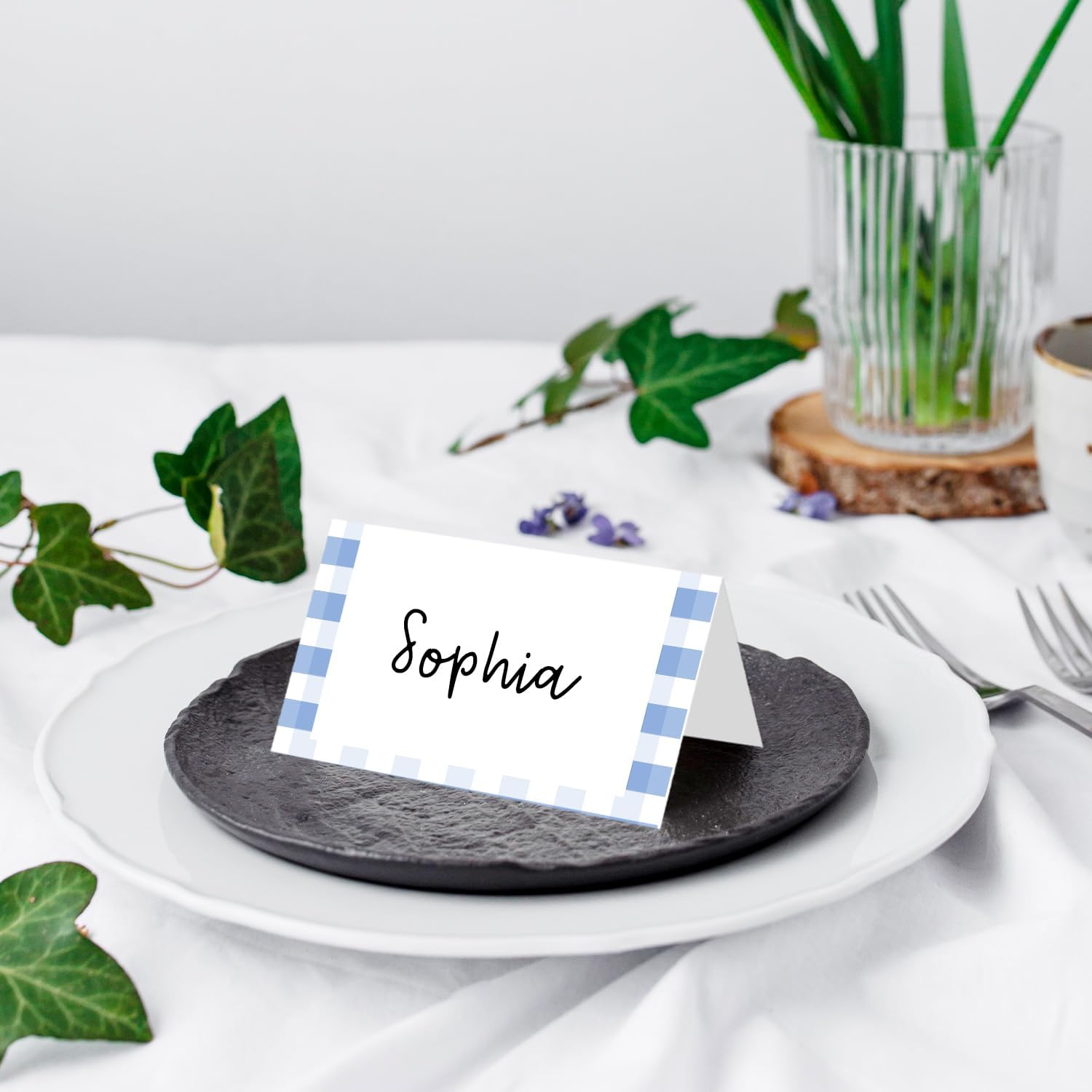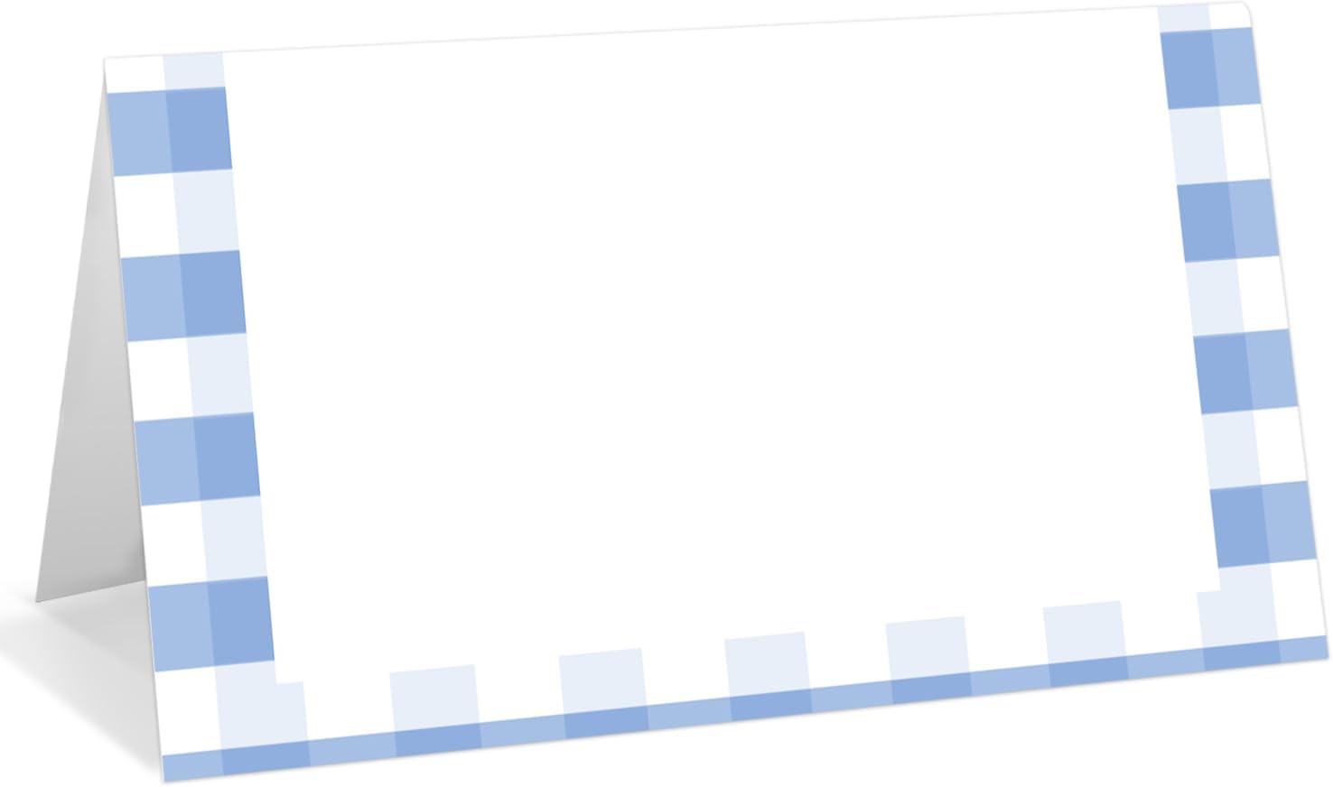 25 Pack Blue Border Place Cards, Editable Name Cards for Table Setting, Tent Cards Food Label for Dinner Party, Bridal Shower, Wedding, Baby Shower and Events -T02
