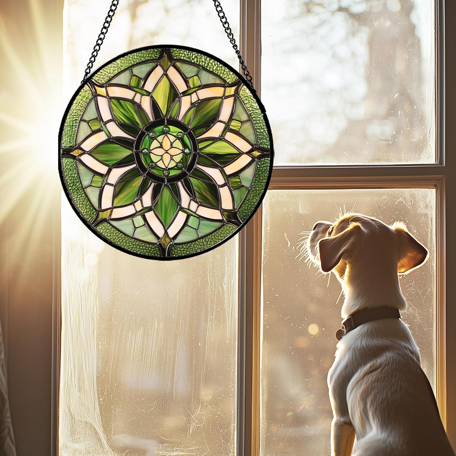 Stained Glass Window Hanging - White Green Boho Flower Suncatcher for Doors Window Home Sun Catchers Decor Christmas Mother's Day Birthday Gifts for Teacher Women Men Mom Nana 7.8 in