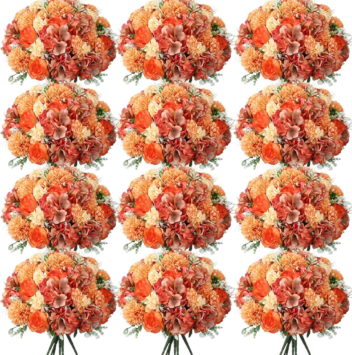 - Attractive Appearance: the fake flowers bouquet is shaped with bright orange peonies, embellished with green leaves, vivid and beautiful, designed with 7 flower heads as a bundle, including hydrangea, peony and more, bushy and vibrant, which will be favored by most people