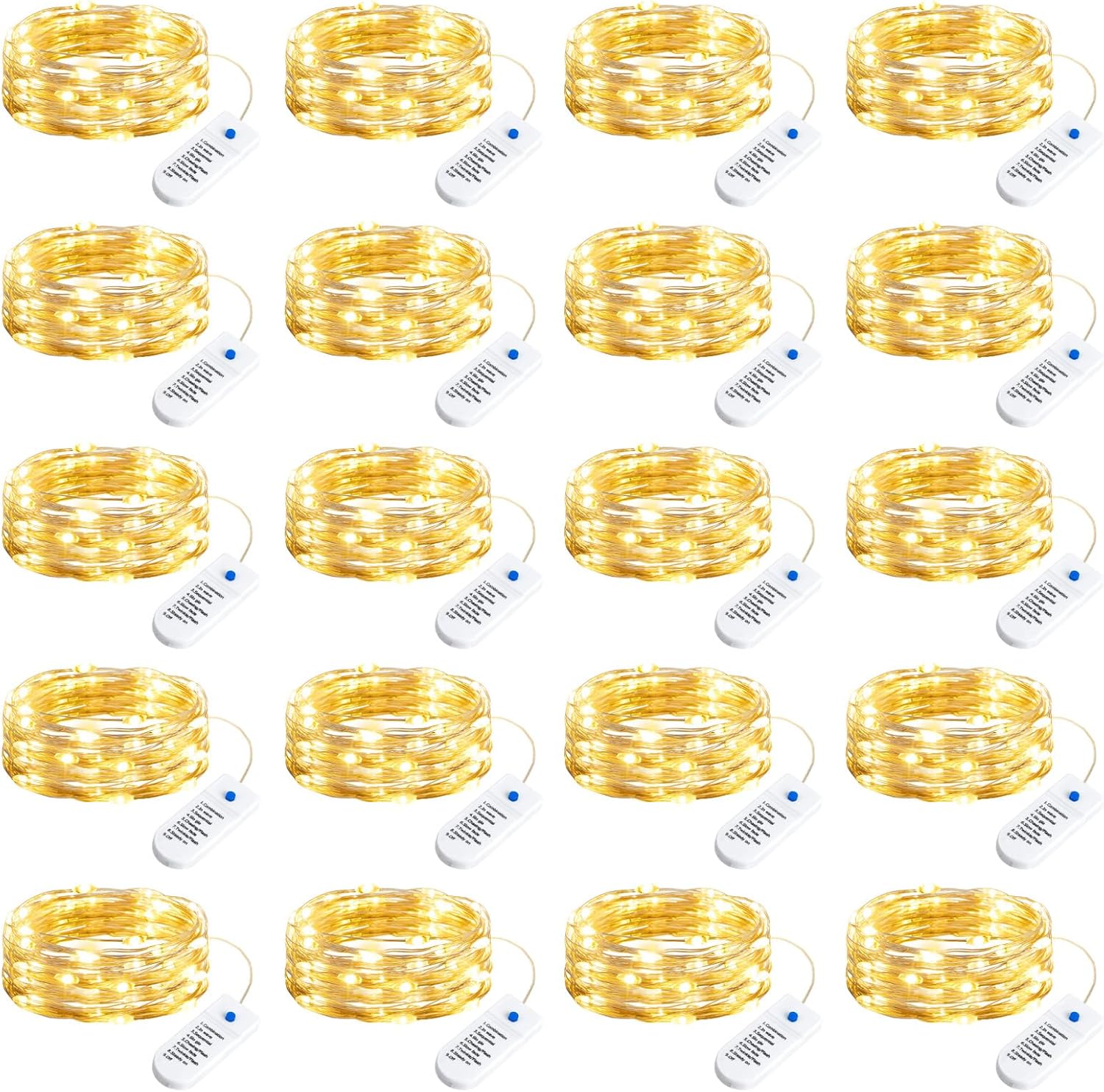 Minetom 20 Pack Fairy Lights Battery Operated String Lights, 8 Modes & Timer, 7ft 20LED Warm White Waterproof Silver Wire Twinkle Lights, Firefly Starry Moon Lights for Mason DIY Christmas Wedding