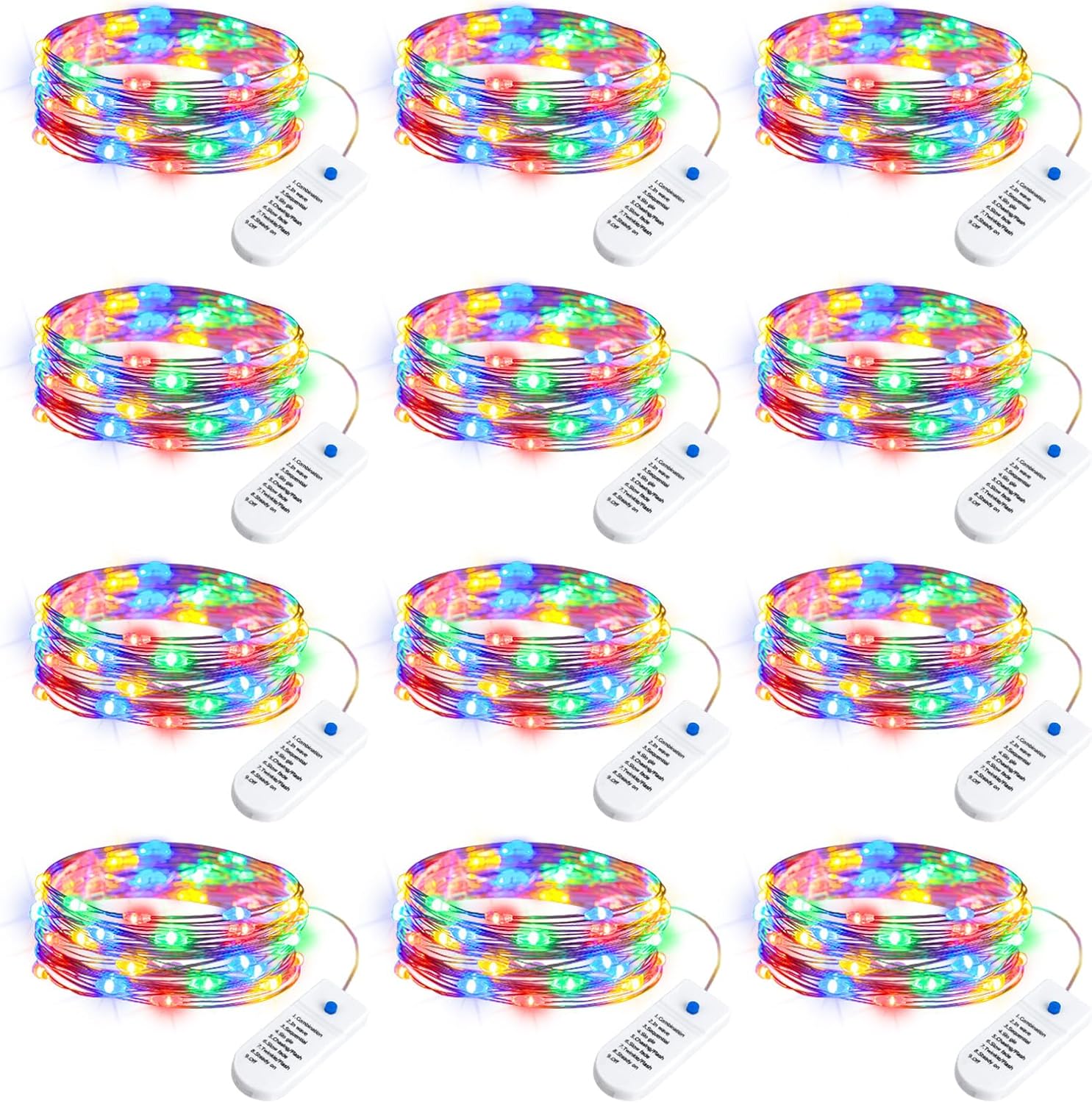 Minetom 12 Pack Fairy Lights Battery Operated String Lights, 8 Modes & Timer, 7ft 20LED Multicolor Waterproof Silver Wire Twinkle Lights, Firefly Starry Moon Lights for Mason DIY Christmas Wedding
