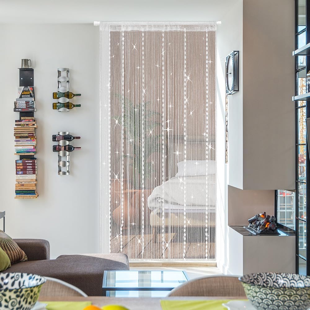 - The string curtain is convenient is install and remove without damaging the wall. The panel string curtain prevent the light, dust while diving the spaces, and also keep the air fresh and healthy.