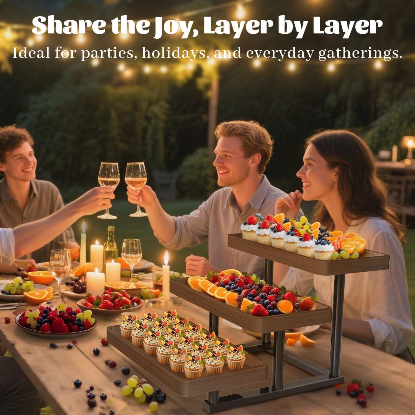 - Easy Assembly – Setting up this 3-tier wooden serving tray couldn’t be easier. You can assemble the entire tray in 15 minutes without any tools or complicated instructions. When the party is over, simply disassemble the tray for compact storage, making it practical, stress-free, and ready for your next event.