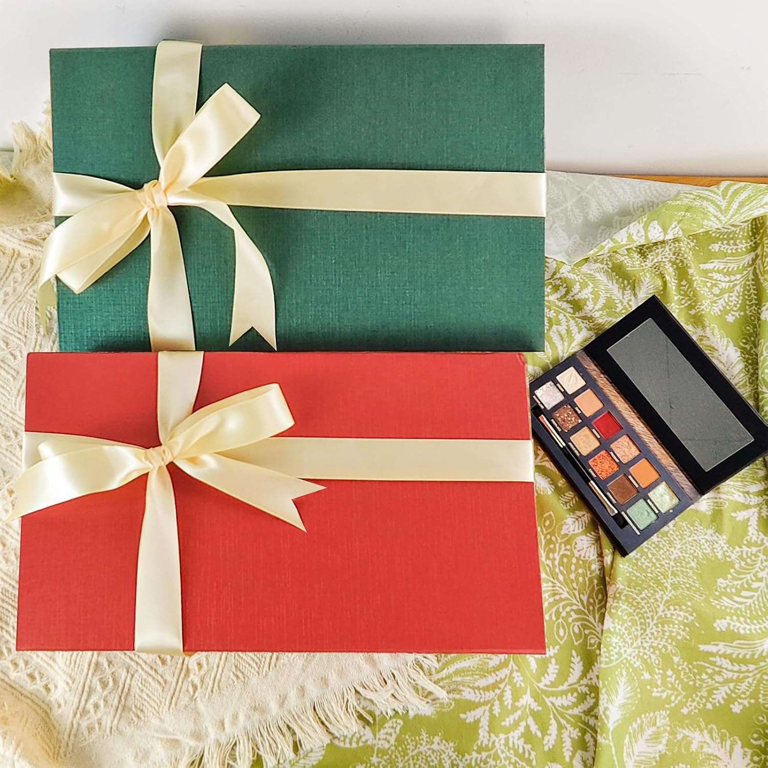 - SIZE:The gift box size 13.75"x9"x4.5",contains a ribbon,a gift card, an envelope.This large gift box is suitable for snacks,cosmetics,perfume,jewelry,candles,mugs,souvenirs and other items.