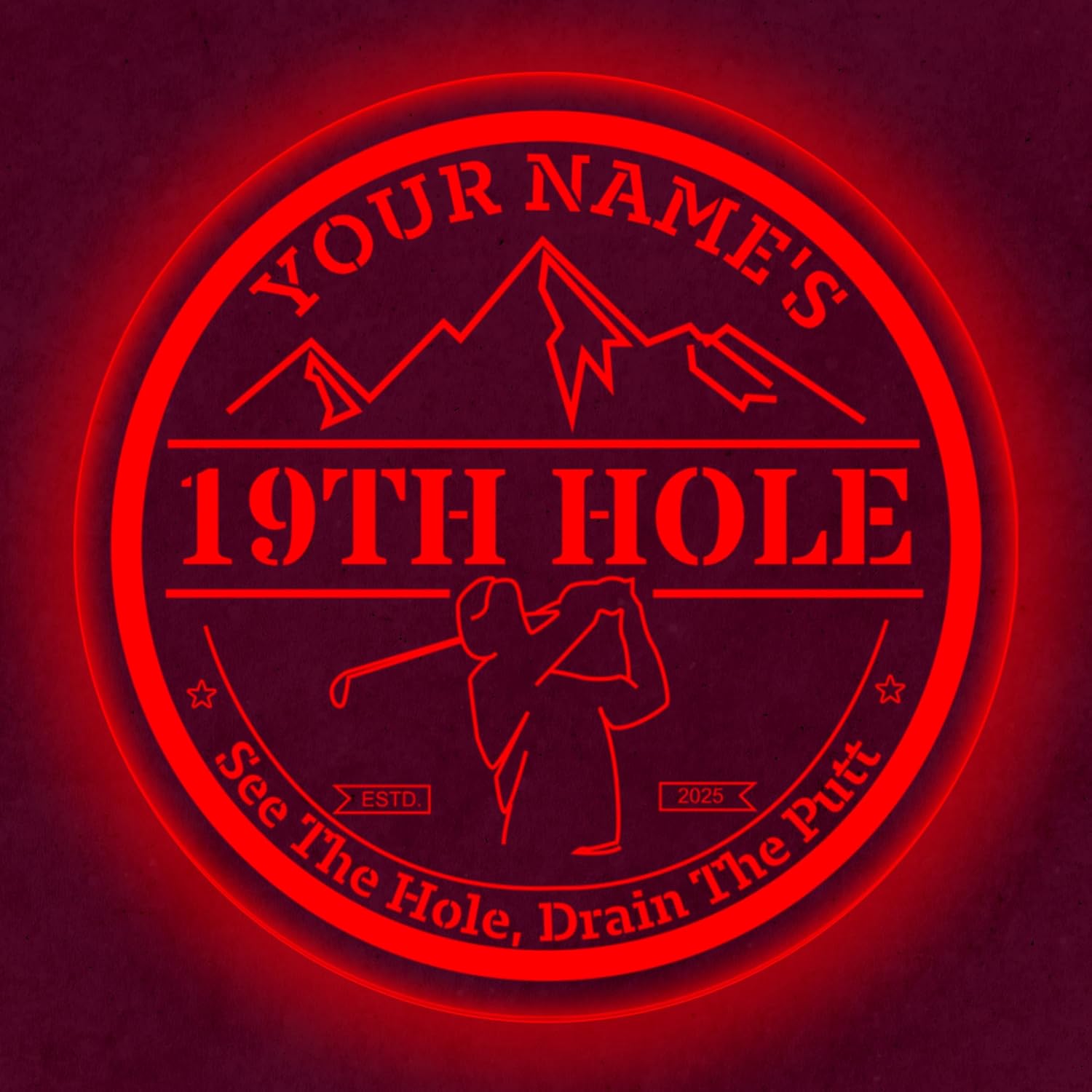 Custom 19th Hole Golf Bar Sign – Personalized LED Color Changing Acrylic Wall Decor for Home Bar, Man Cave, or Patio (19th Hole, 16 INCHES)