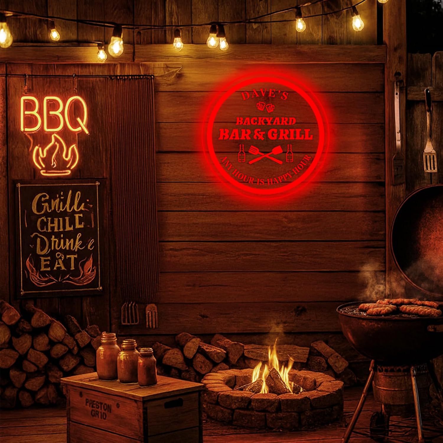 - Custom Acrylic Sign with LED Lights: Personalize this clear laser engraved acrylic sign with a name or phrase and enjoy vibrant color changing LEDs that match your backyard bar, patio, or man cave vibe; comes with a remote for easy control of colors and lighting modes