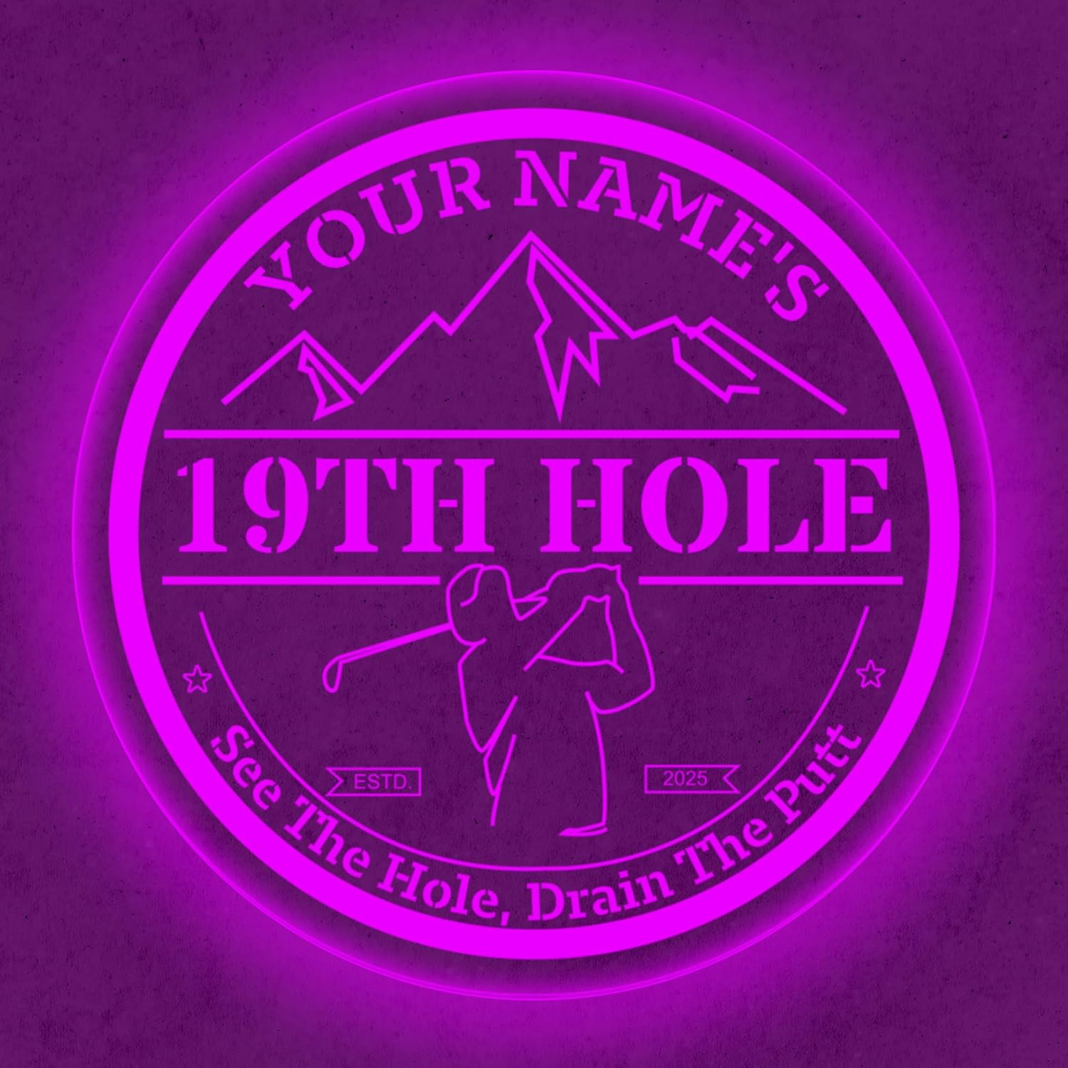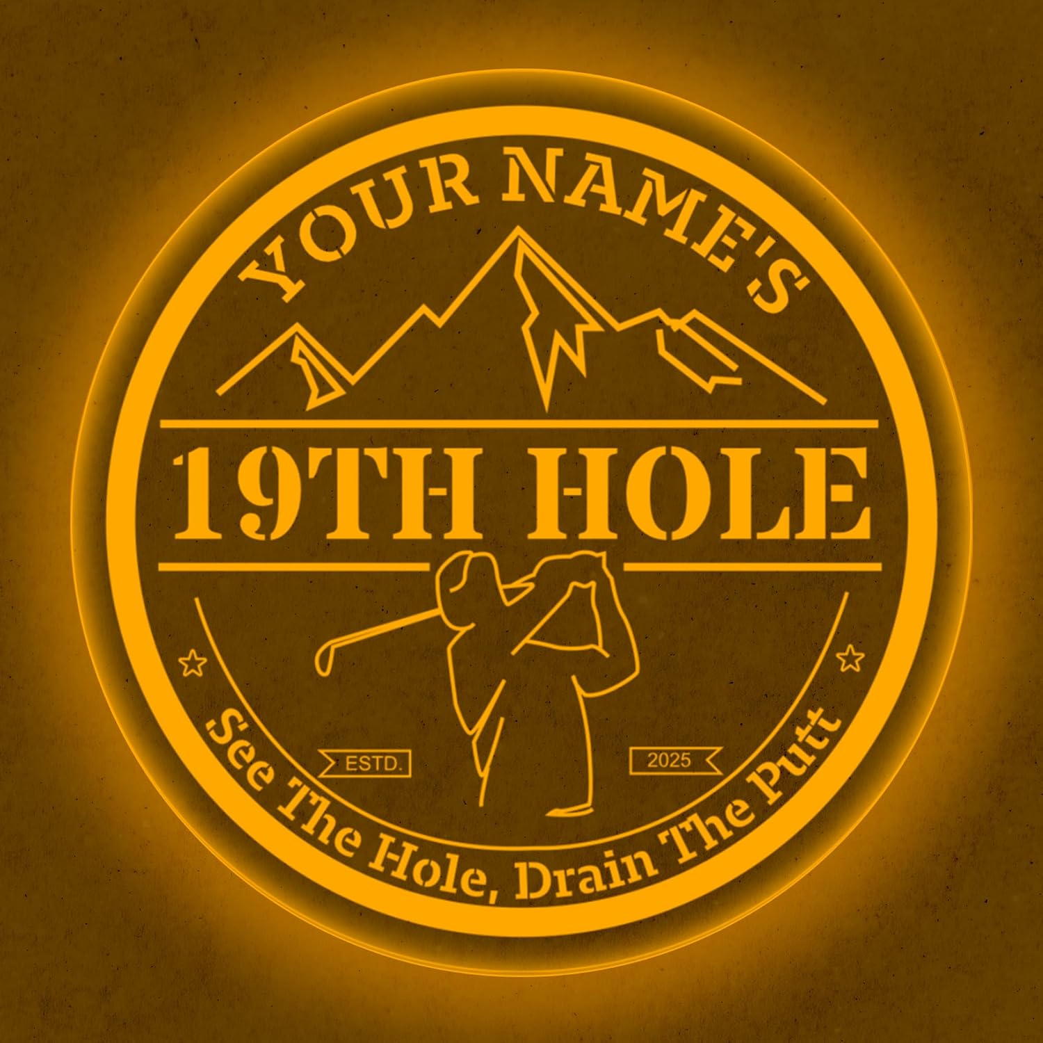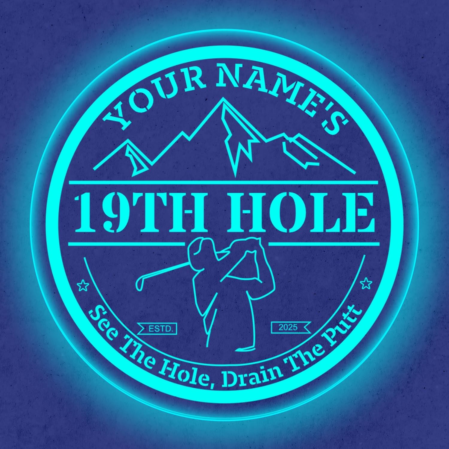 Custom 19th Hole Golf Bar Sign – Personalized LED Color Changing Acrylic Wall Decor for Home Bar, Man Cave, or Patio (19th Hole, 12 INCHES)