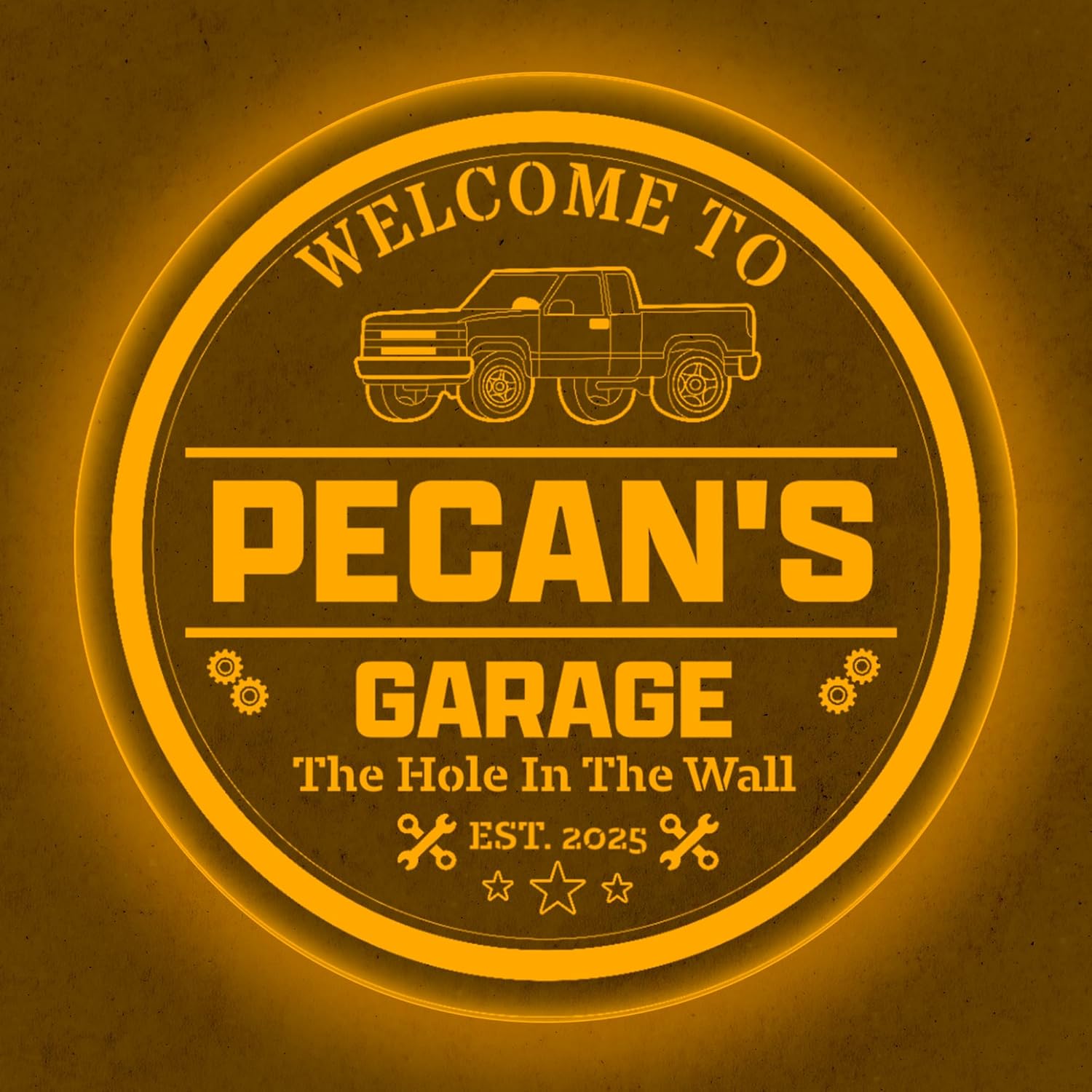 - Personalized Pickup Truck Sign with LED Lights: Add your name, shop name, or phrase to this laser engraved acrylic sign with bright color changing LEDs for standout garage or shop decor