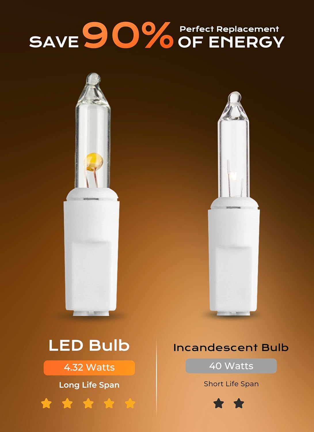 - [Mini Christmas Lights Set] Christmas lights on white wire set includes 50 count transparent LED mini-lights, 16 feet white wires, and each bulb is 4 inches apart, 24 inches lead wire, 4 inches end connector. Christmas String light sets come with 2 spare fuses and 2 spare bulbs for easy replacement. This mini Christmas light can be connected end to end and can be extended to a longer connection length, making it be suitable for different decoration needs