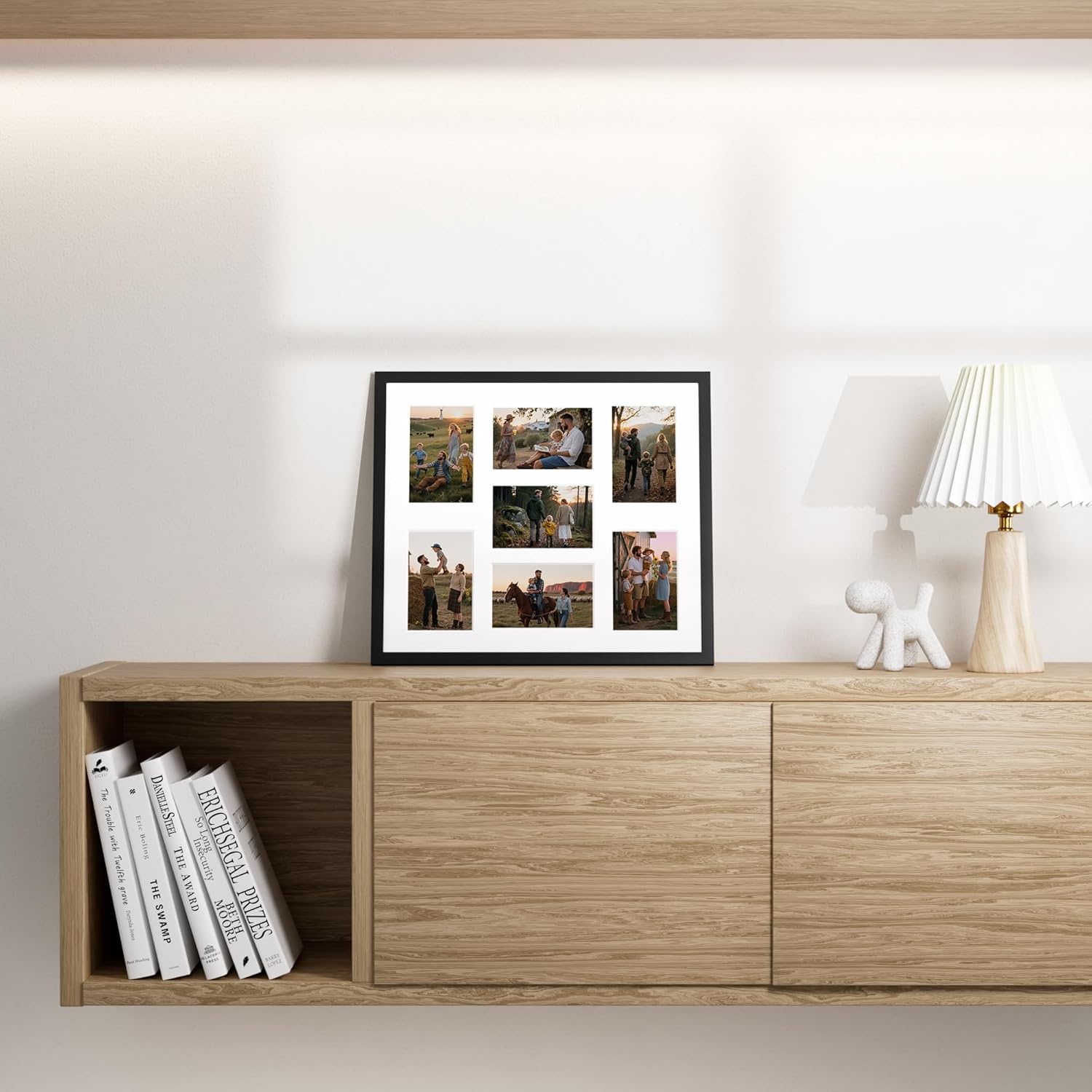 Vittanly 15x17 Collage Picture Frame, Displays 7Pcs 4x6 Pictures with Mat, Picture Frames Collage Wall Decor for Horizontal or Vertical Display, Black, 1 Pack
