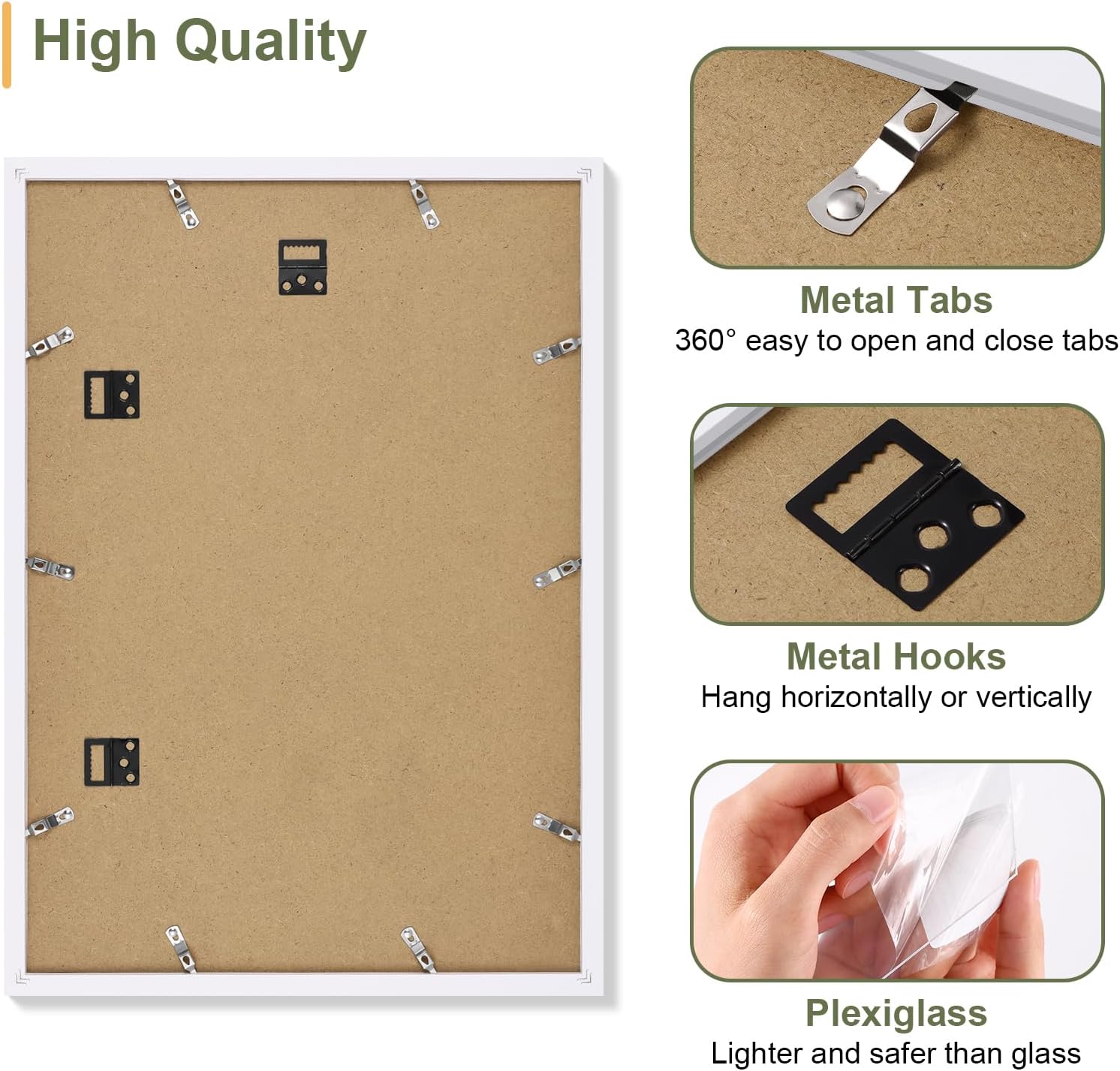 - Ease of Use: The collage frame features a quick-release back panel with flexible tabs for effortless photo switchs in seconds. Pre-installed hooks allow instant wall mounting horizontally or vertically