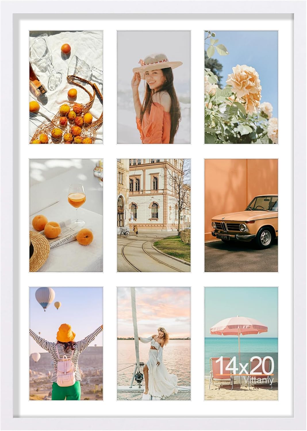 Vittanly 14x20 Collage Picture Frame, Displays 9Pcs 4x6 Pictures with Mat, Picture Frames Collage Wall Decor for Horizontal or Vertical Display, White, 1 Pack