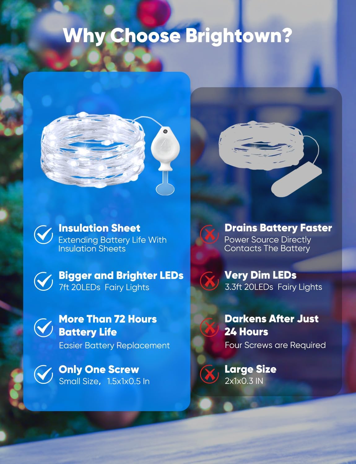 - [Zero Standby Power & Eco-Friendly] Fairy lights features a unique sliding insulating tab that physically disconnects the circuit when slid out (lights on) or in (lights off). This eliminates all battery drain when off, significantly extends battery life, reduces replacement frequency, and minimizes waste for a more sustainable choice