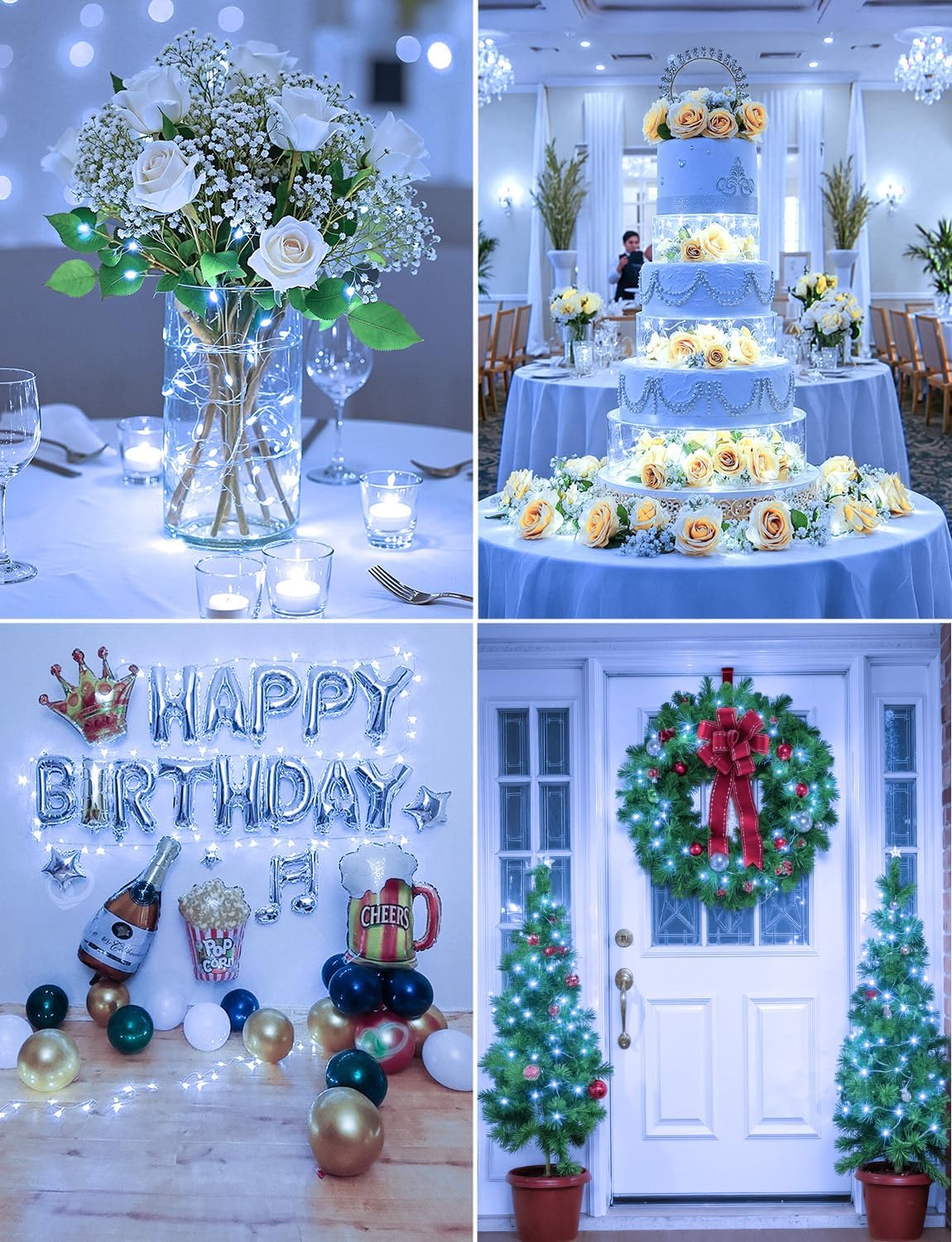 - [Romantic Your Moments and Brighten Your Life] Battery Operated Fairy lights is perfect for decorations and creating romantic atmosphere on Valentine's Day, Christmas decorations, Halloween, and any other important festivals.Perfect fairy lights for weddings, parties, mason jars, crafts, arts, trees, branches, plants, flowers, kids’ rooms, tents, bedrooms, living rooms, nurseries, cubicles, loft beds, windows, ceilings, walls, shelves, patios, porches, balconies, corridors, fences, staircases, awnings, bulletin boards, holiday, Christmas, winter wonderland decorations