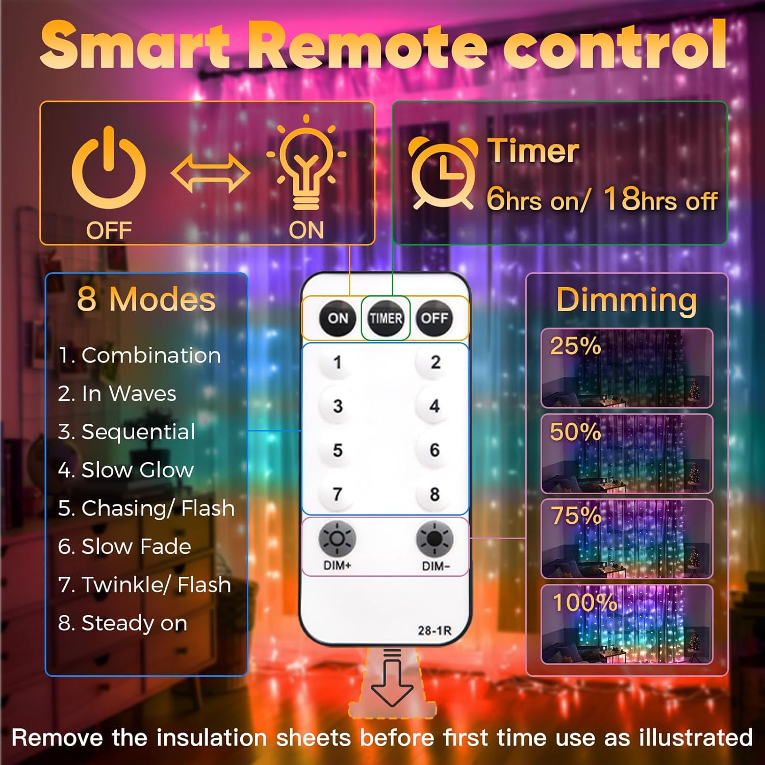 - 【Diverse Lighting Modes to Suit Every Mood】Equipped with a multifunctional remote control, the curtain lights offer 8 lighting modes. This includes a steady - on mode and 7 flashing modes such as waves, twinkling, and slow fading. Whether you're hosting a romantic dinner, a lively party, or having a relaxing bedtime routine, you can easily find the perfect lighting atmosphere.