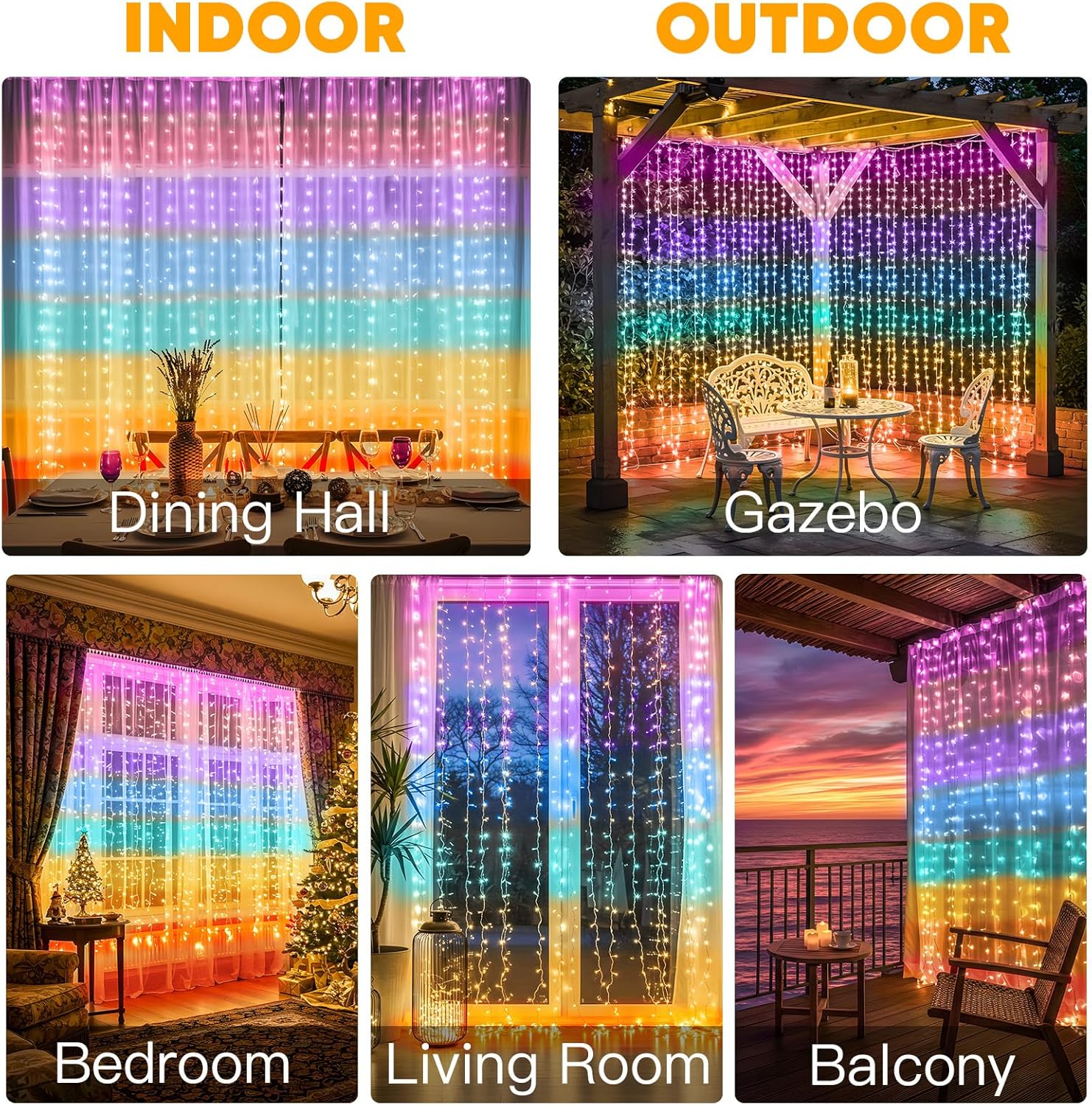 - 【Create a Captivating Ambiance】The color scheme of our 320 LED Colorful Curtain Lights is a vibrant symphony of hues. these lights can transform any space into a magical realm. Whether you're aiming for a lively, energetic atmosphere for a party or a soft, dreamy glow for a relaxing evening, they offer endless possibilities. They infuse every corner with a unique charm, creating unforgettable moments for you.