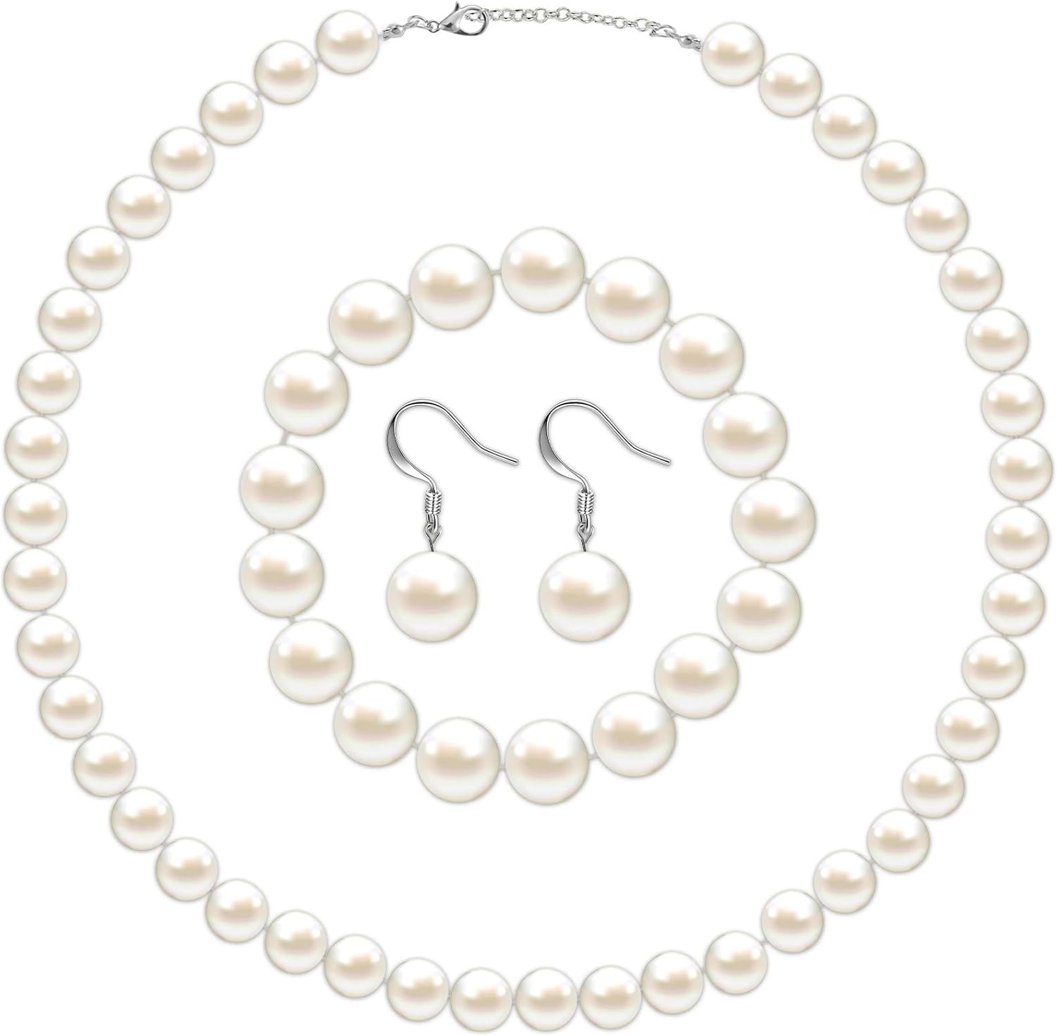 - Faux Pearl Jewelry Set: the faux pearl jewelry set includes 1 pearl necklace, 1 elastic beaded bracelet and 1 pair of pearl earrings, the necklace measures approximately 18 inches, the bracelet is 7.9 inches long, a set of matching pearl jewelry is worthy of your favor