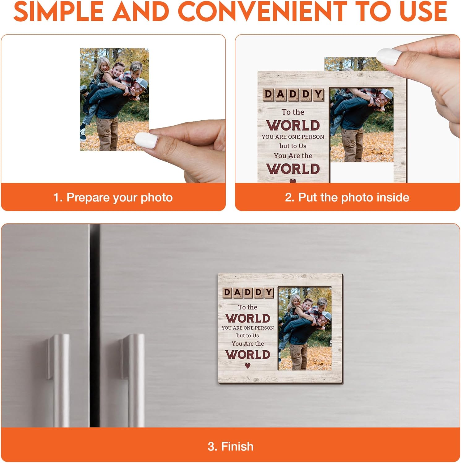 - π Thoughtful Gift for Dad β These magnetic picture frames proudly present the touching message 'To the world you are one person, but to us you are the world.' A perfect way to honor fathers with every cherished family photo displayed.