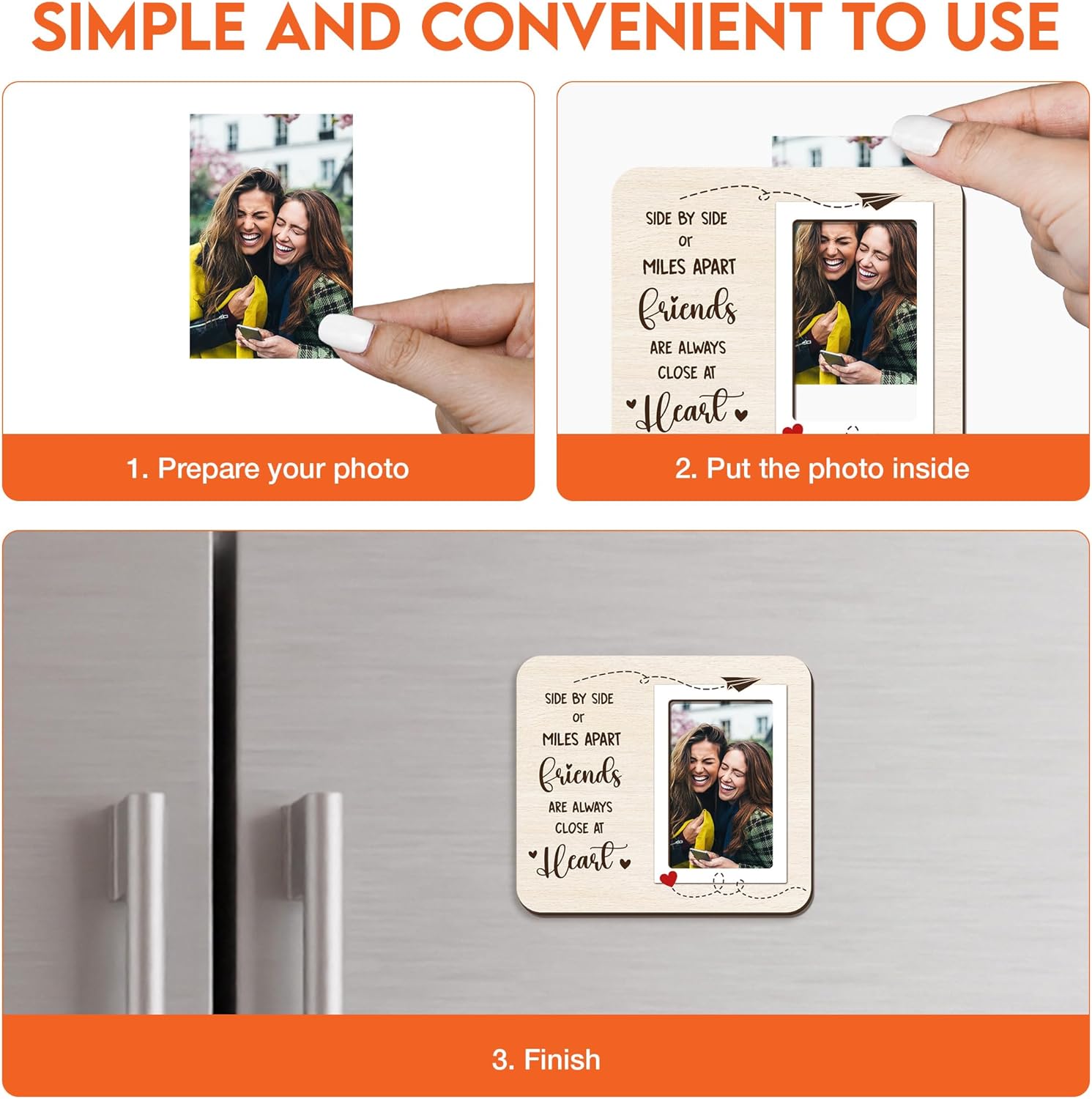 - π Long-Distance Friendship Gift β With the message 'Side by Side or Miles Apart, Friends are Always Close at Heart,' these magnetic picture frames are perfect for celebrating enduring friendships.