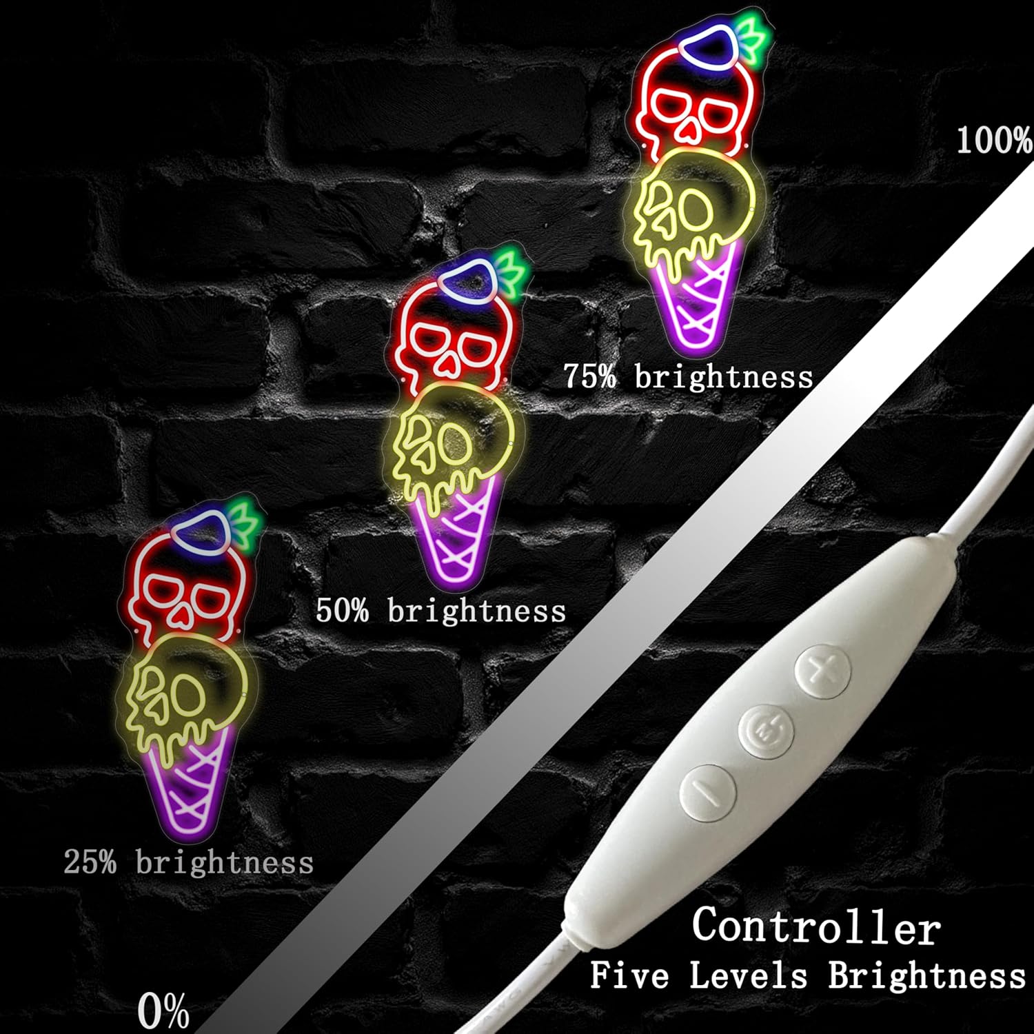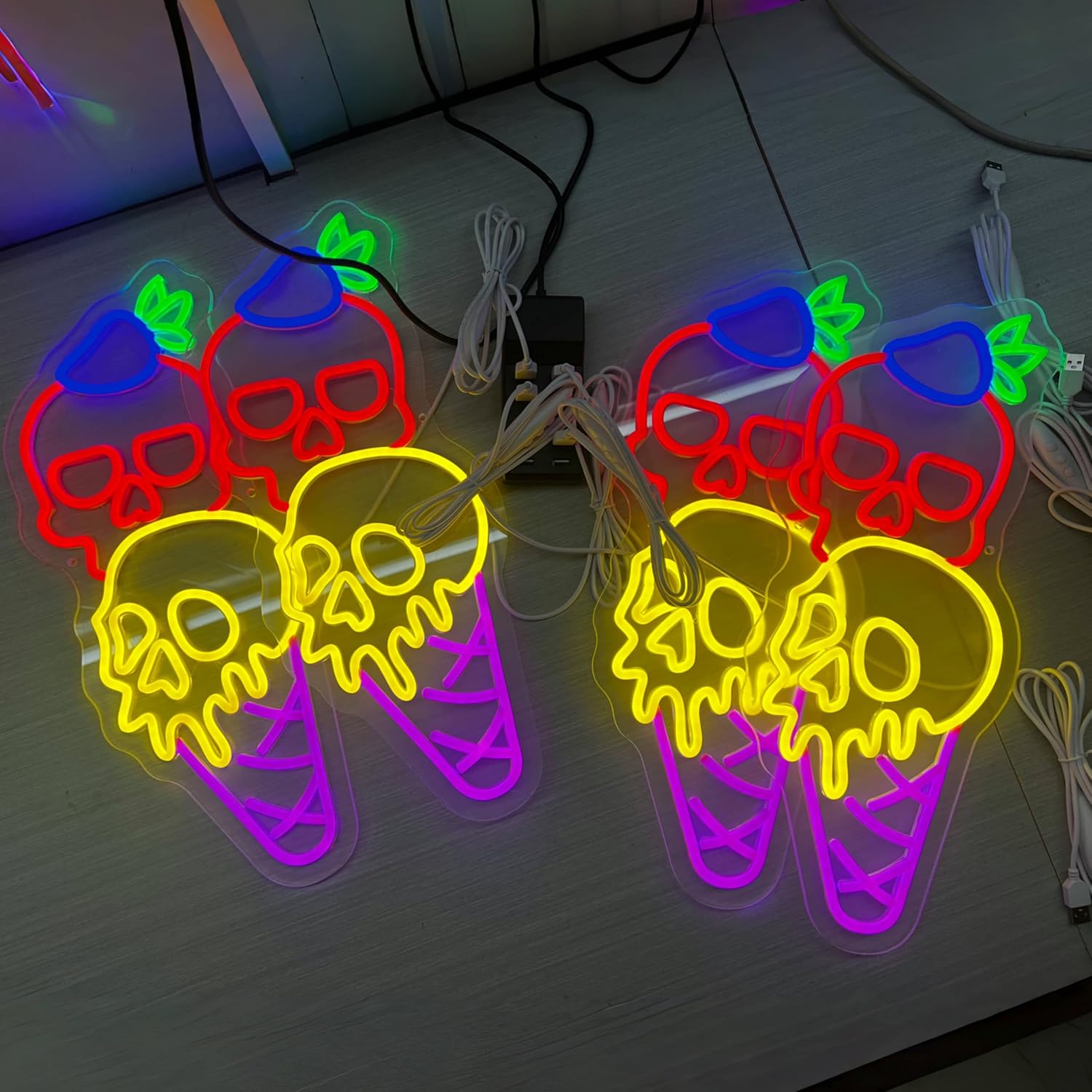 - 【Dark Delicious Glow】: This unique design blends a cheerful ice cream cone with a glowing skull for the perfect mix of cute and creepy. Sweet Meets Dark in a Radiant Glow! Unleash Your Edgy Sweet Tooth! Whether you’re decorating a bedroom, gaming setup, or alternative lounge, this sign delivers a unique vibe that’s both dark and delightful.