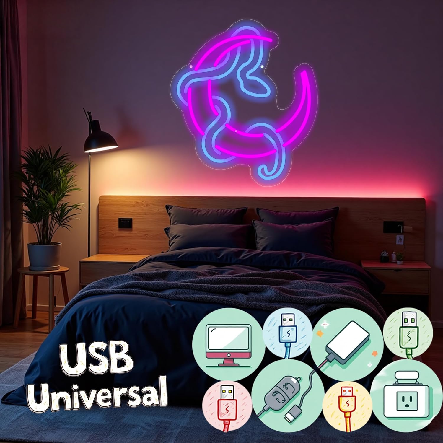 - 【Easy Installation&Use】:The acrylic neon sign has two pre-drilled holes for easy hanging. Powered by USB wire (PC/mobile power bank/charger),portable for different occasions. Plug in for instant use. And all neon wall lights with dimmable switch,don't need to unplug it,you can control the on/off and brightness at any time.