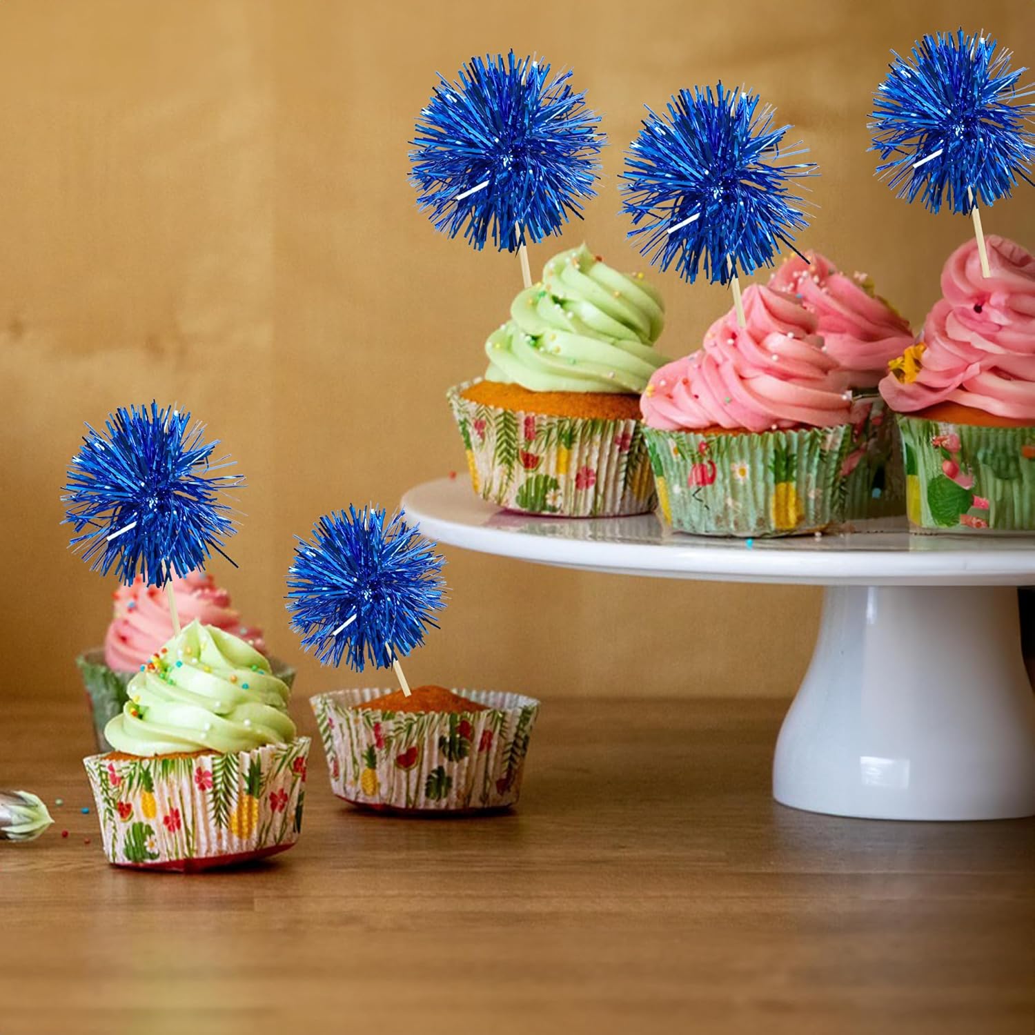 Gyufise 30Pcs Foil Firework Cupcake Toppers Sparkle Tinsel Cake Toppers Tinsel Drink Cake Decoration Cocktail Picks for Birthday Wedding Graduation Party Supplies Dark Blue
