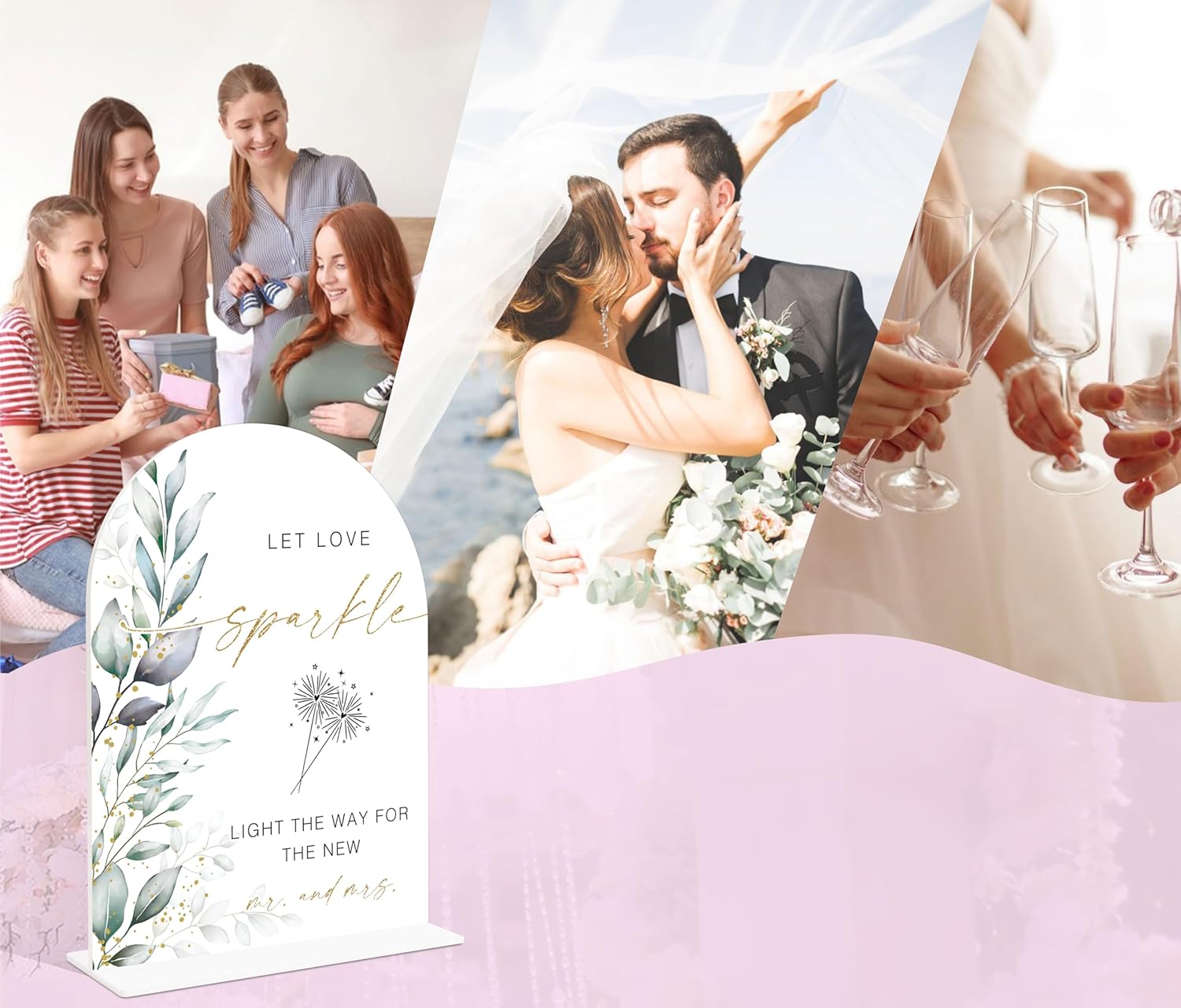 Acrylic Wedding Signs, Greenery Theme Let Love Sparkle Sign, Wedding Reception Signage, Bridal Shower Table Decor with Stand, Engagement, Anniversary, Newlywed Events and Parties Supplies, 20