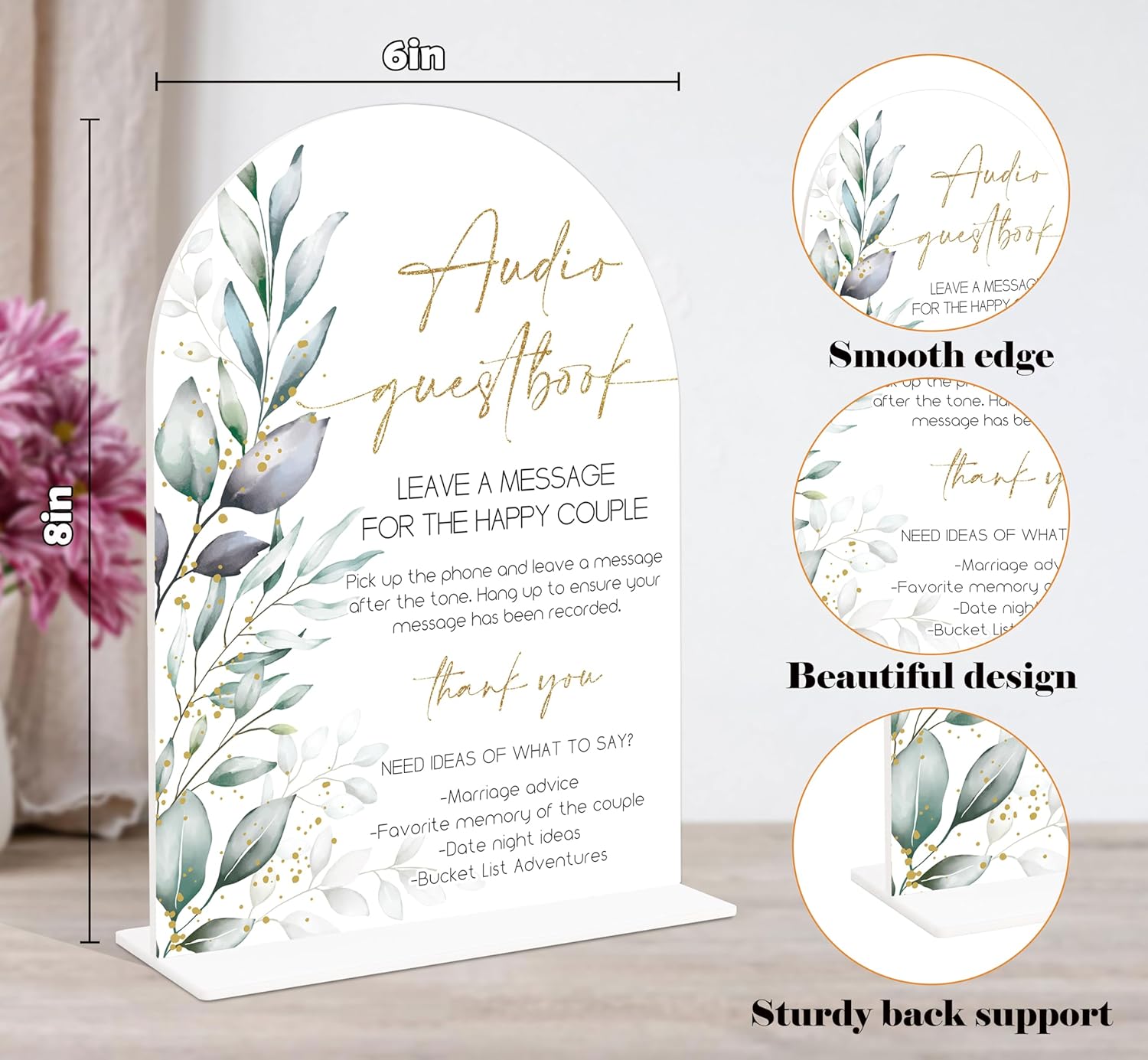 Acrylic Wedding Signs, Greenery Theme Audio Guestbook Sign, Wedding Reception Signage, Bridal Shower Table Decor with Stand, Engagement, Anniversary, Newlywed Events and Parties Supplies, 09
