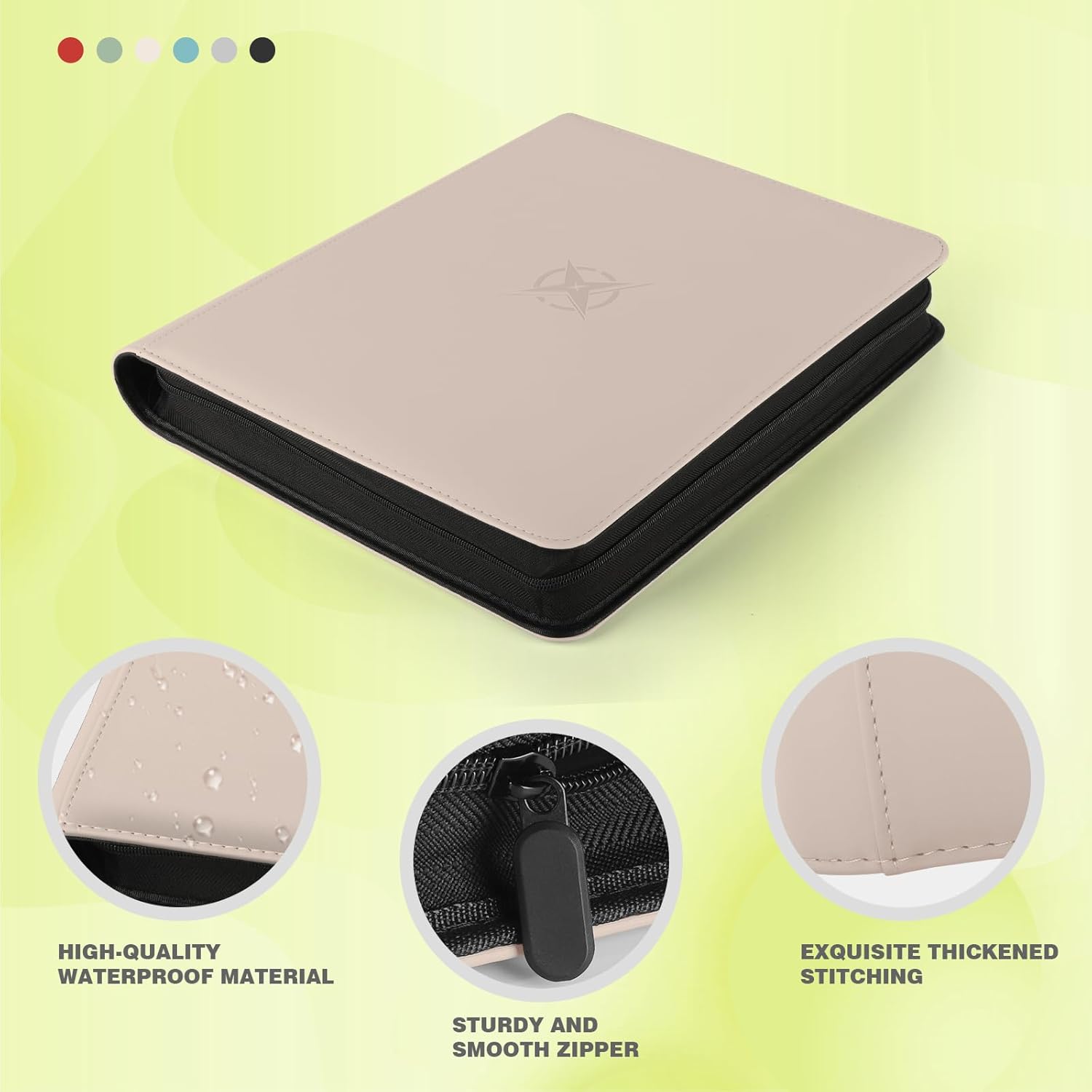Trading Card Binder, Card Binder 9 Pocket for Trading Cards, Holds 540 Cards, Zippered Premium Card Collection Binder Album for Game Card, Sports Card, Yugioh, MTG (Ivory White)