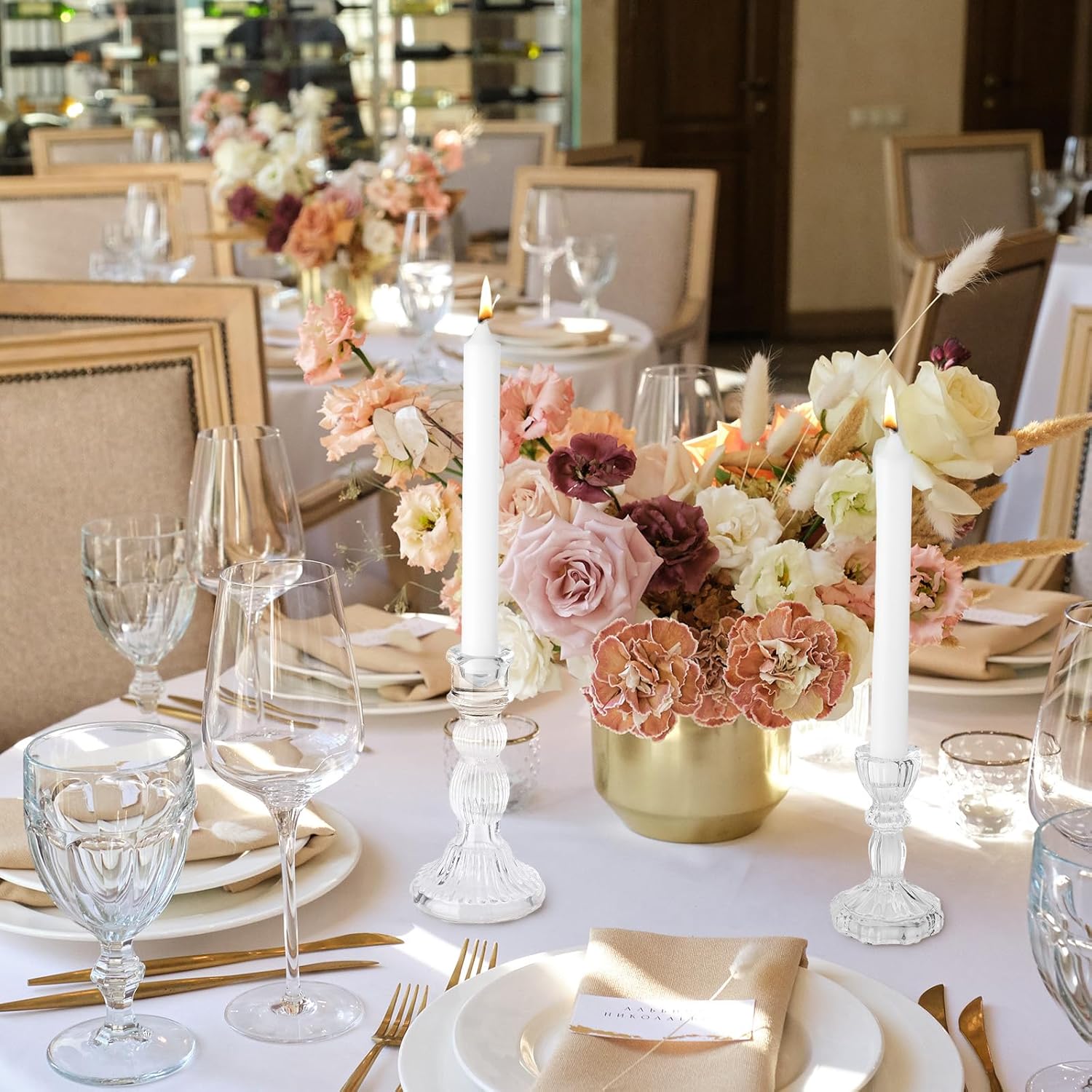 Mumufy 80 Pcs Glass Crystal Taper Candle Holders Clear Glass Candlestick Holder Fit 0.8 Inch Candles Crystal Decorative Candle Stand Centerpiece Table Wedding Dining Party (Classic,Clear)