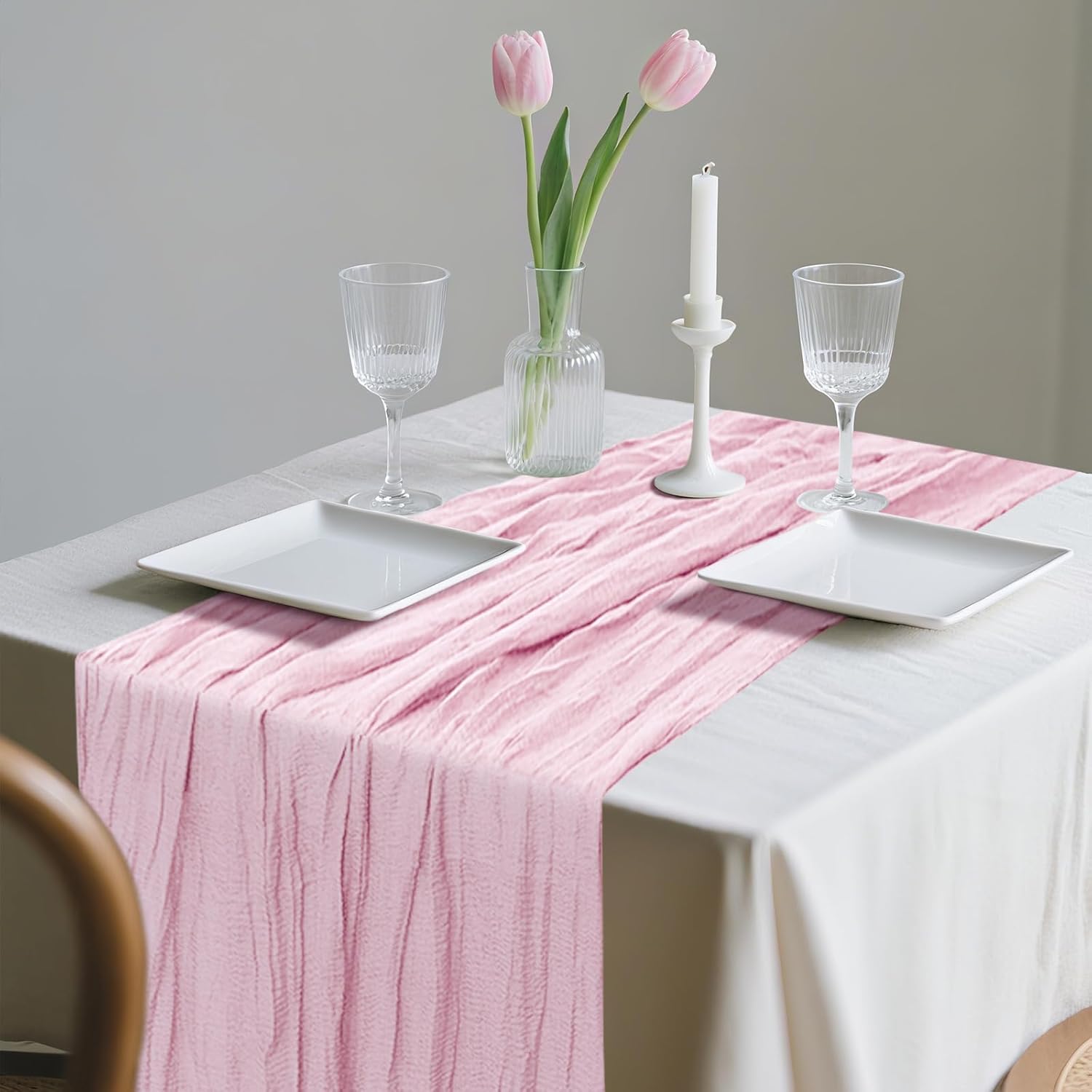 - 【Soft Material】: Made of high quality polyester, soft to touch, comfortable and durable. Wrinkled design cheese cloth farbic, delicate edges and stitches, adopts seamless technique makes this sheer table runner more graceful than traditional fabrics. Our cheesecloth wedding table runners are durable, the colour stays for a long time, does not fade and can be reused.