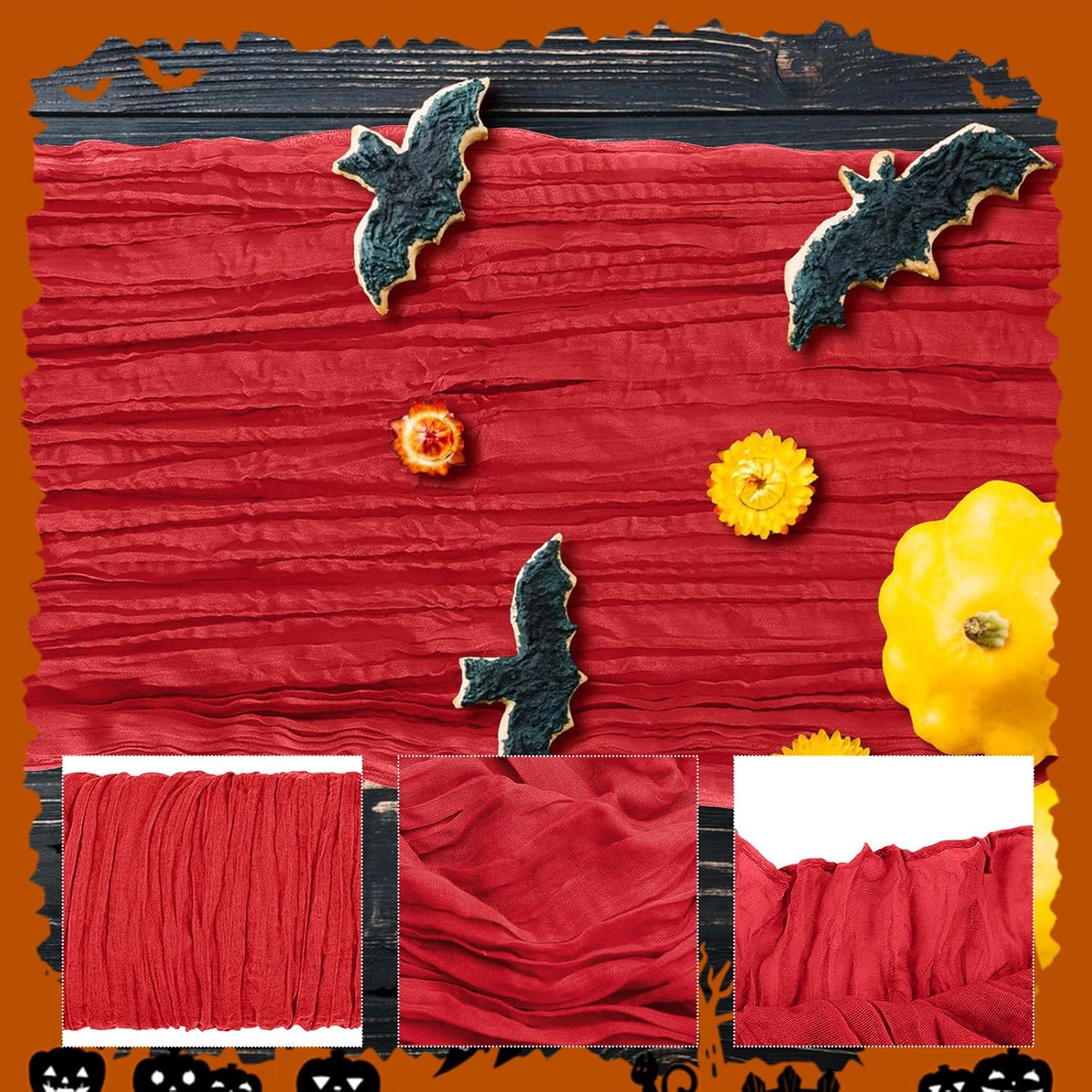 - 【Soft Material】: Made of high quality polyester, soft to touch, comfortable and durable. Wrinkled design cheese cloth farbic, delicate edges and stitches, adopts seamless technique makes this sheer table runner more graceful than traditional fabrics. Our cheesecloth wedding table runners are durable, the colour stays for a long time, does not fade and can be reused.